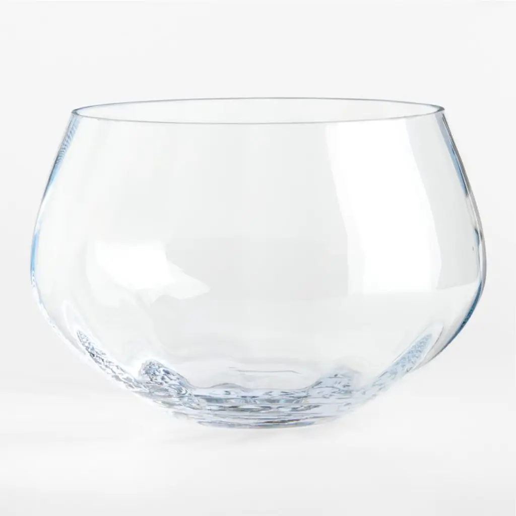 Old-school entertaining with a new-school optic design. Generous glass bowl features faceted sides that swirl to create the low, rounded shape for ladling beverages or floating flowers and candles on table or buffet. Matching punch cups and glass ladle sold separately.