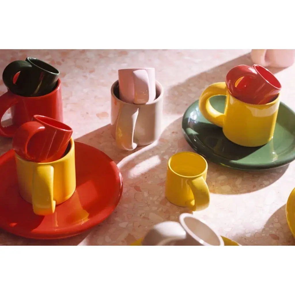 Hem's Bronto espresso cup is part of a tableware collection that is not shy about its existence. Designed by Supergroup, the cup has a recognizably bulky and chunky design – dinosaur-like, one might even say. So no wonder the ceramic dinnerware has actually got its name from the giant Brontosaurus! Exaggerated curves bring the glossy glazed mug to life and vibrant colors put a smile on your face at the breakfast table, no matter how tired you were before your first cup of coffee. The package contains four espresso cups in four different colors.