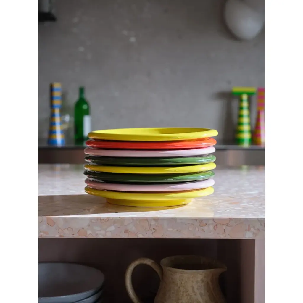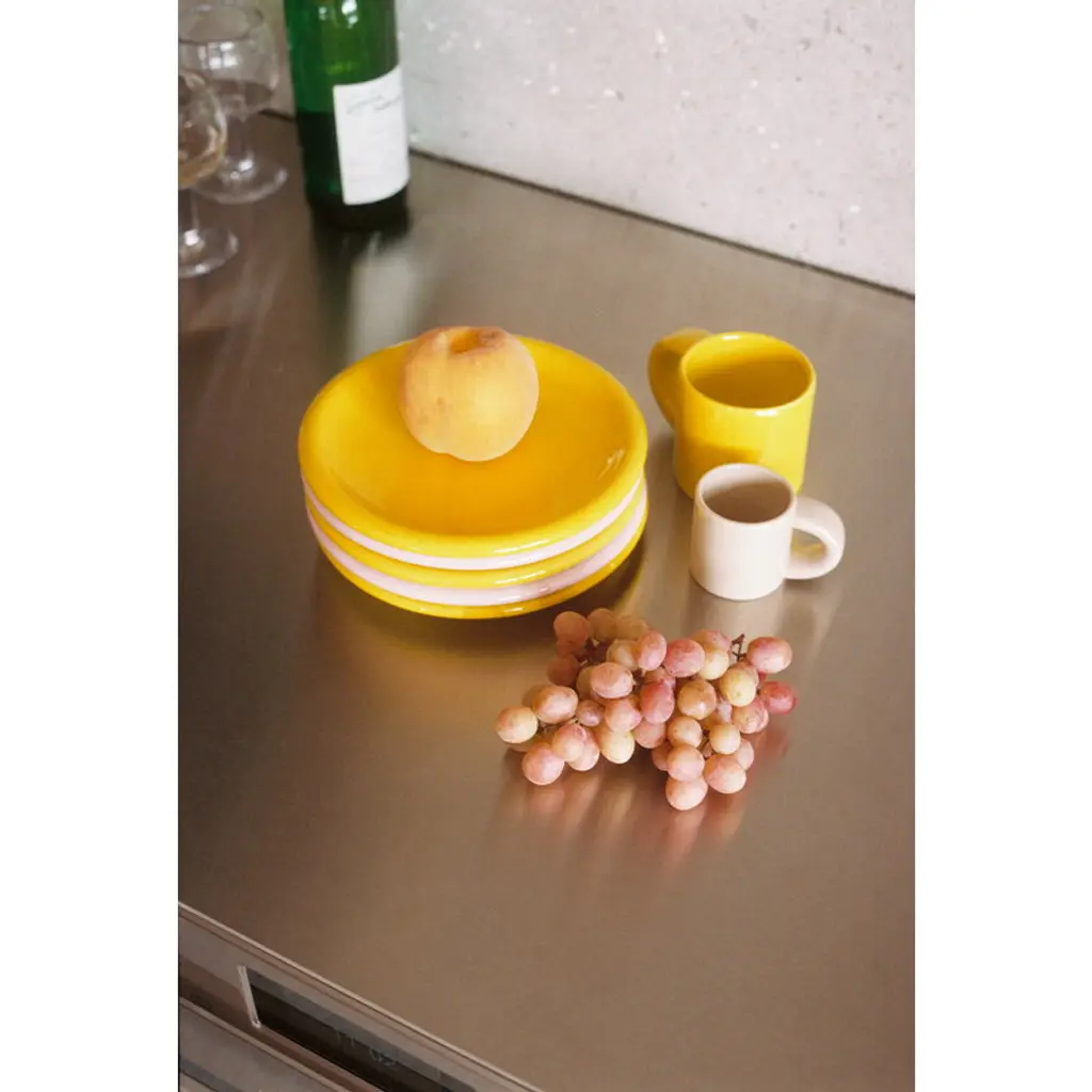 Hem's Bronto plate is part of a tableware collection that is not shy about its existence. Designed by Supergroup, the plate has a recognizably bulky and chunky design – dinosaur-like, one might even say. So no wonder the ceramic dinnerware has actually got its name from the giant Brontosaurus! Exaggerated curves bring the glossy glazed plate to life and vibrant colors put a smile on your face at the breakfast table or when serving desserts. The package contains two plates.