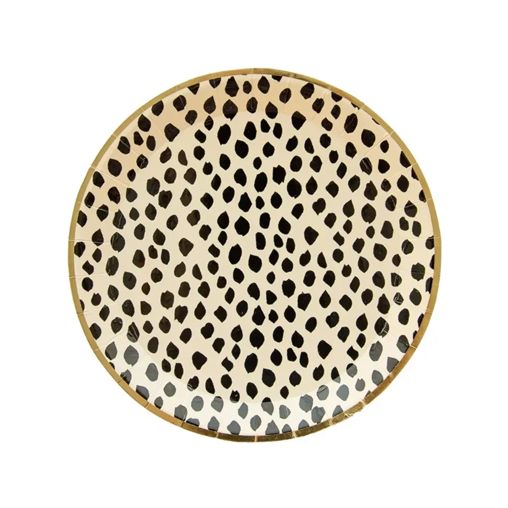 This updated take on polka dots is perfect for any occasion, no matter how fancy. With painterly blots of gold on crisp white, it's a fun and playful design that's also elevated. Includes 10 plates. Details 9.25" paper platesSet of 10Recyclable and compostableExtra sturdy - pile on the second serving!