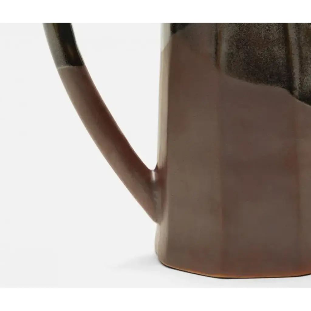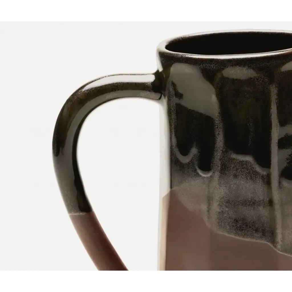 Finish: Metallic Green/Bronze Material: Stoneware The Bryce stoneware pitcher is sculpted with faceted sides, a swooping handle, as we as contrasting matte bronze and luster mossy glaze. Blue Pheasant's products are handmade with care by artisans using natural materials. They are not mass produced, so variation between products should be expected, and this is why we love them! It is these irregularities that makes Blue Pheasant what it is—a special brand whose collections are distinctly handmade, full of charm and originality you’ll never find in machine-made products.