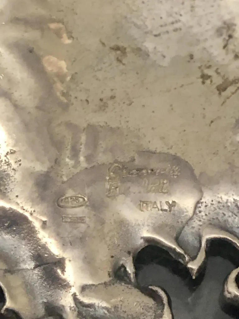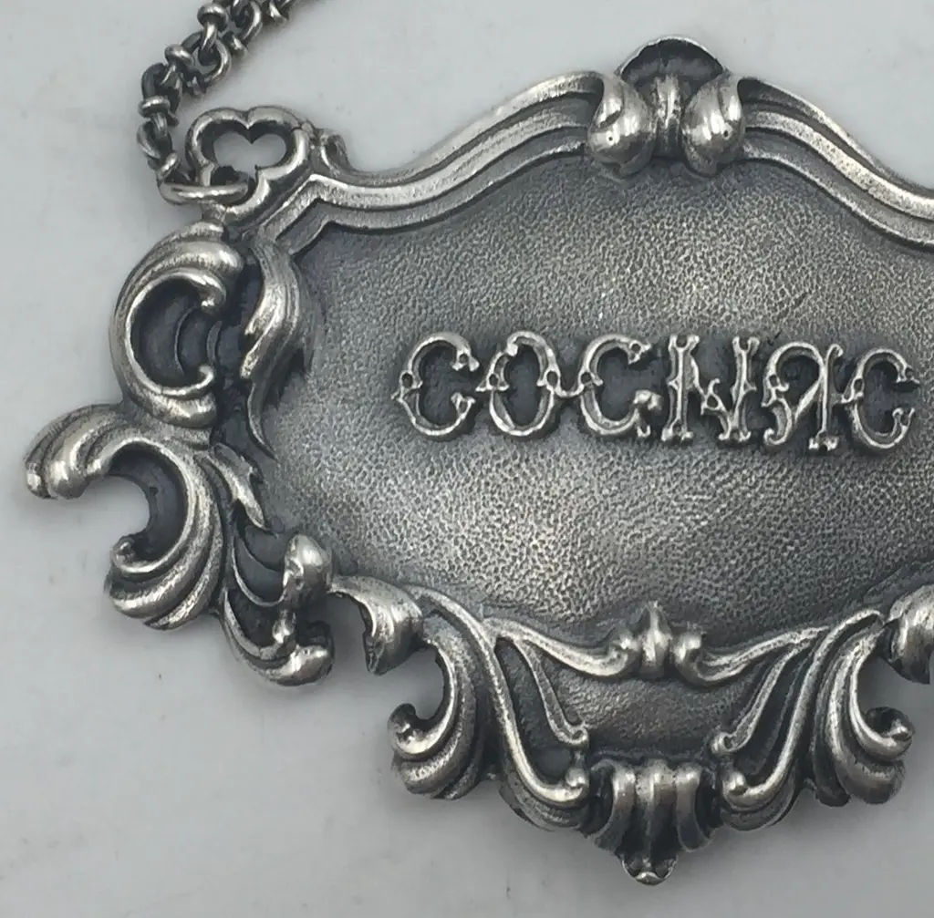 Rare Buccellati sterling silver claret bar jug label. COGNAC embossed on the front in the center.Marks on the back: Gianmaria Buccellati (signature and Italian maker's mark), ITALY, 925 (encircled silver purity mark).It measures 3in x 2in. Mario Buccellati, the founder of Buccellati, was born in Ancona in 1891, but moved to Milano in the early 20th century. As soon as he arrived, he secured an apprenticeship with the goldsmiths Beltrami and Besnati, whose business at Via Santa Margherita 5, between La Scala and the Galleria, at the heart of the city. It was here that the young Mario learned the best in Italian goldsmithing traditions. At the end of the First World War, Mario decided that the time was right for him to set up his own venture and he took over Beltrami and Besnati’s business. In 1925, Mario, alongside his brother, Carlo, opened a second store at Via Condotti 30–31, Rome. A third followed four years later at Via Tornabuoni 71, Florence. International expansion and recognition continued in the following years and Mario's descendants played a role in this international overture. In 2000, The Smithsonian Institution of Washington dedicated an anthological exhibition to Buccellati called “Buccellati: Art in Gold, Silver and Gems”. Gianmaria donated the Smithsonian Cup to the museum for the occasion; it is now on permanent display. Buccellati still continues to dazzle with its extraordinary craftsmanship to this day.Please feel free to e-mail us with any questions, and please see our other listings.