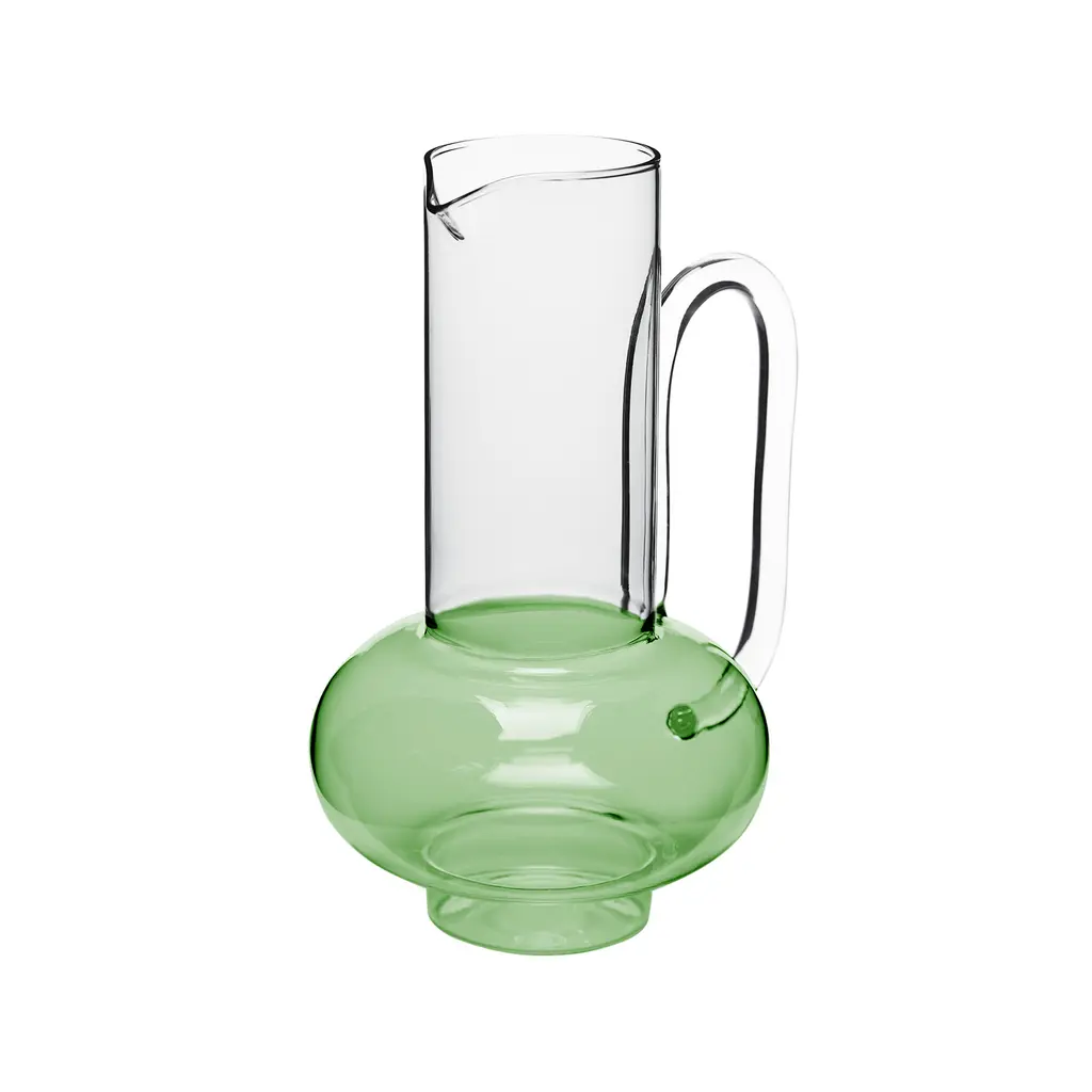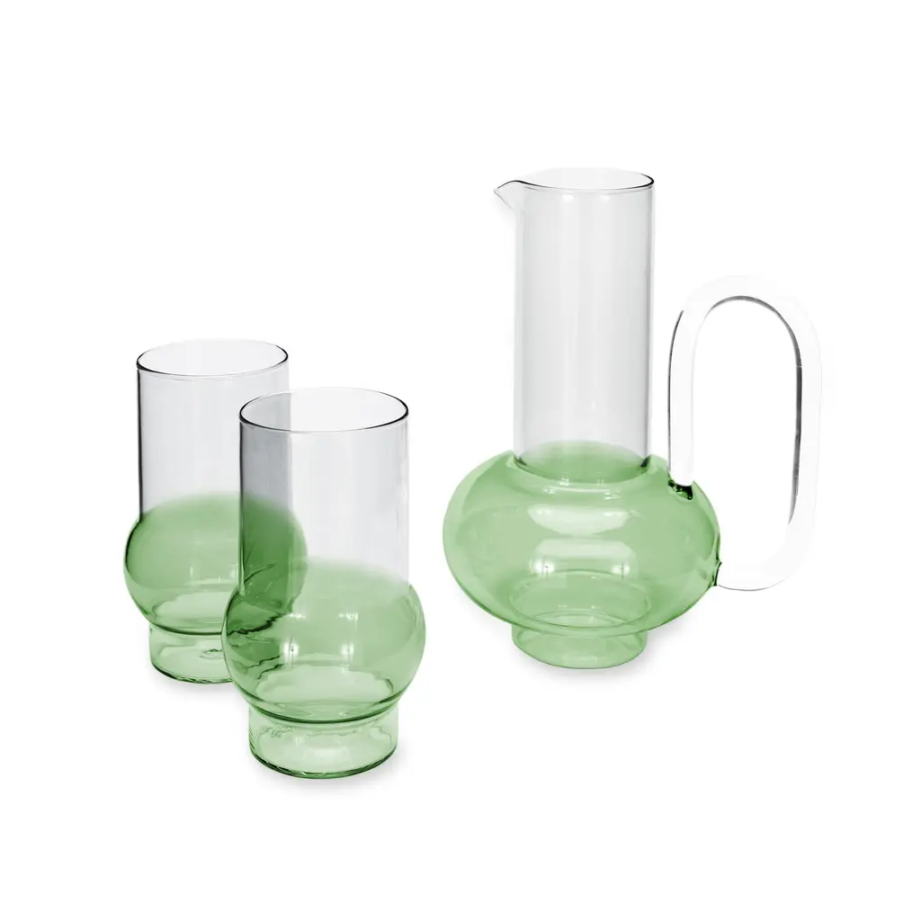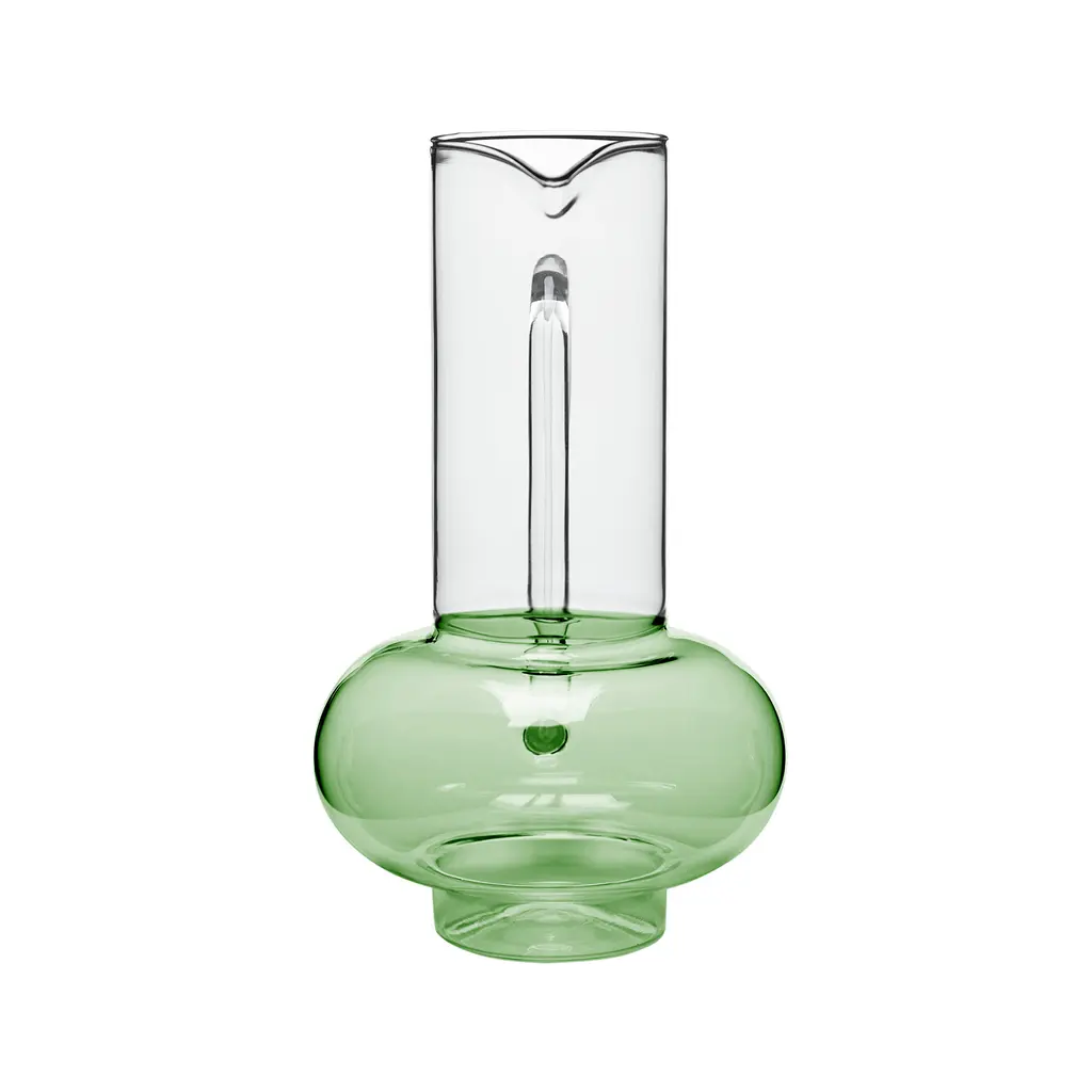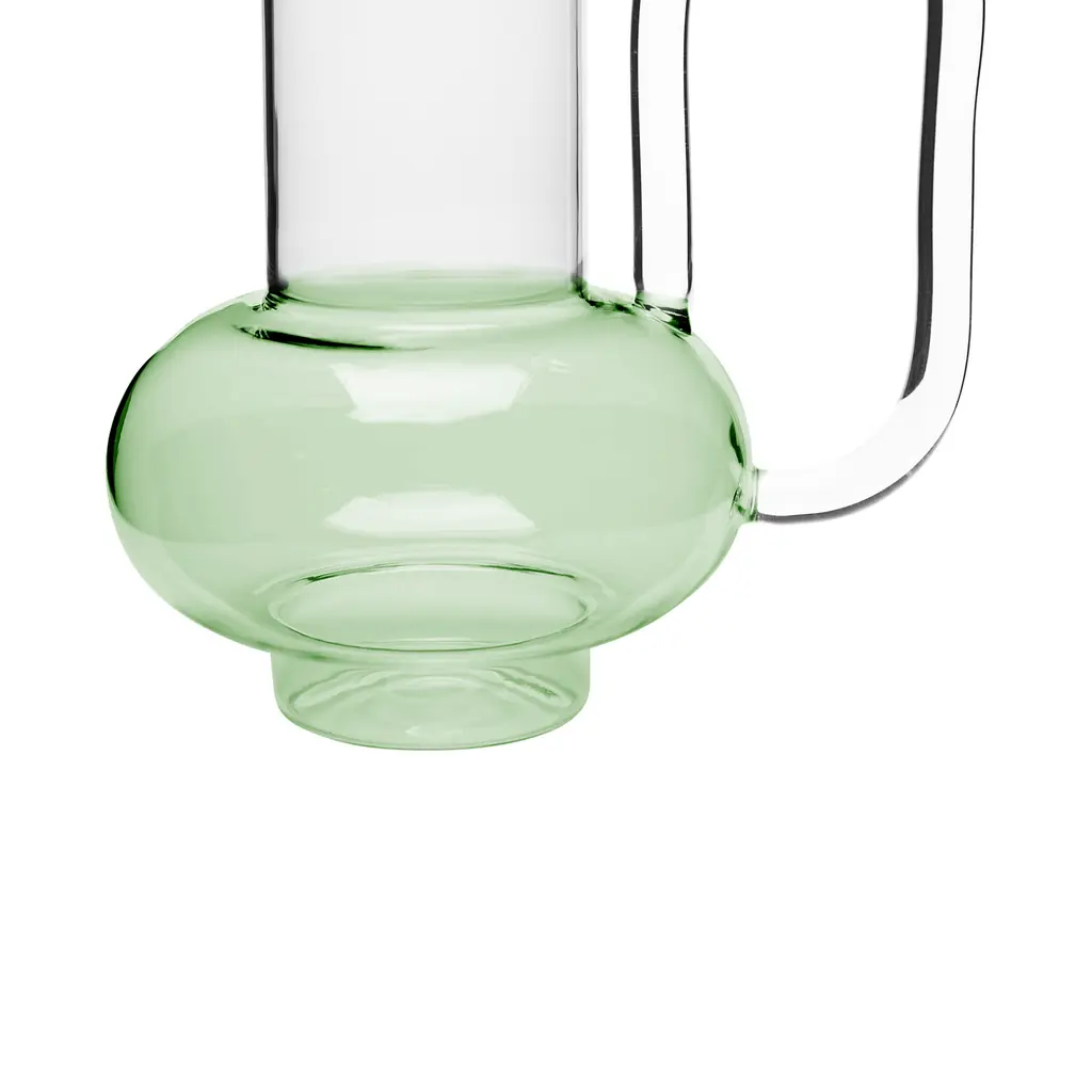 The Bump Jug proves once and for all that minimalist objects can have plenty of charm and character. Designed by Tom Dixon, the Bump line provides a playful take on scientific glass objects. At the same time, the collection offers a new perspective on daily rituals. Spherical shapes and tubular forms provide the building blocks for the Bump Jug. Handmade from the same glass used to make laboratory flasks, the borosilicate glass jug is both durable and heat-resistant. Apart from its striking silhouette, the jug also boasts beautiful colors: gray and light green. Use the Bump Jug on its own or with the tall or short glasses from the same collection.