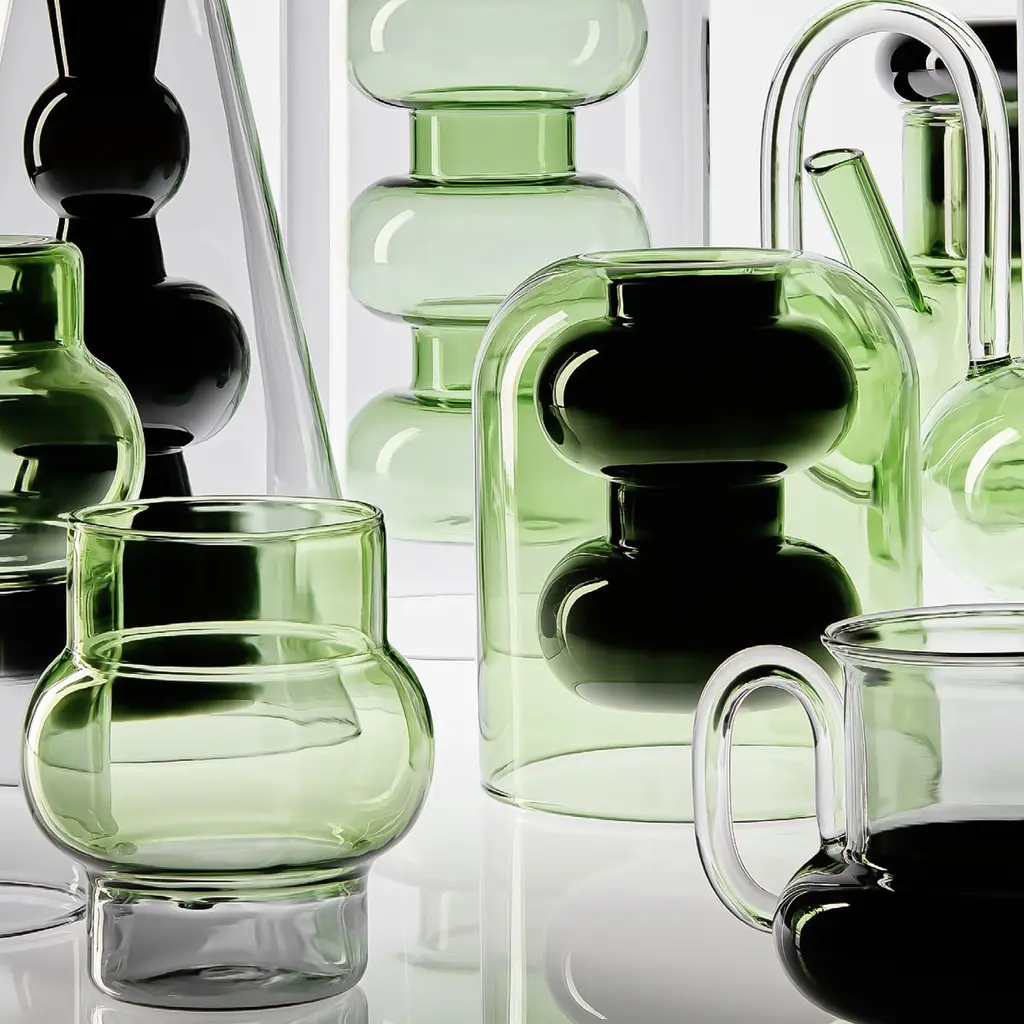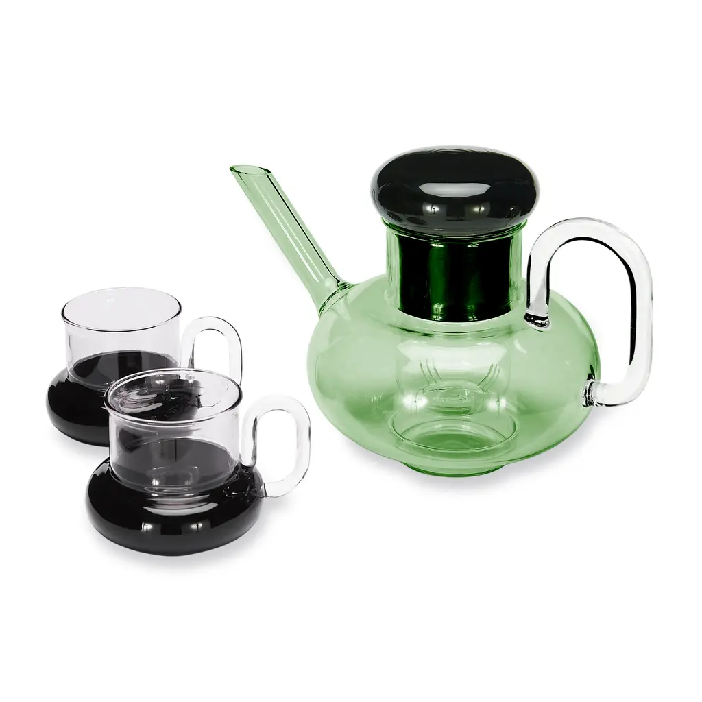 The Tom Dixon Bump collection celebrates the ritualistic nature of tea making via creative design. The line also draws inspiration from the glassware found in science labs. As a result, the Bump Tea Cup Set makes a strong first impression and delights the senses. The cups boasts the line’s signature blend of spherical and tubular forms as well as different colors. On the bottom, the usually clear borosilicate glass features a black opaque color, while the top has clear color. The tea cups are made from mouth-blown and heat-resistant borosilicate glass, which is normally found in science laboratories. This Bump Tea Cup set comes with two cups. A matching tea pot and glasses are also available.