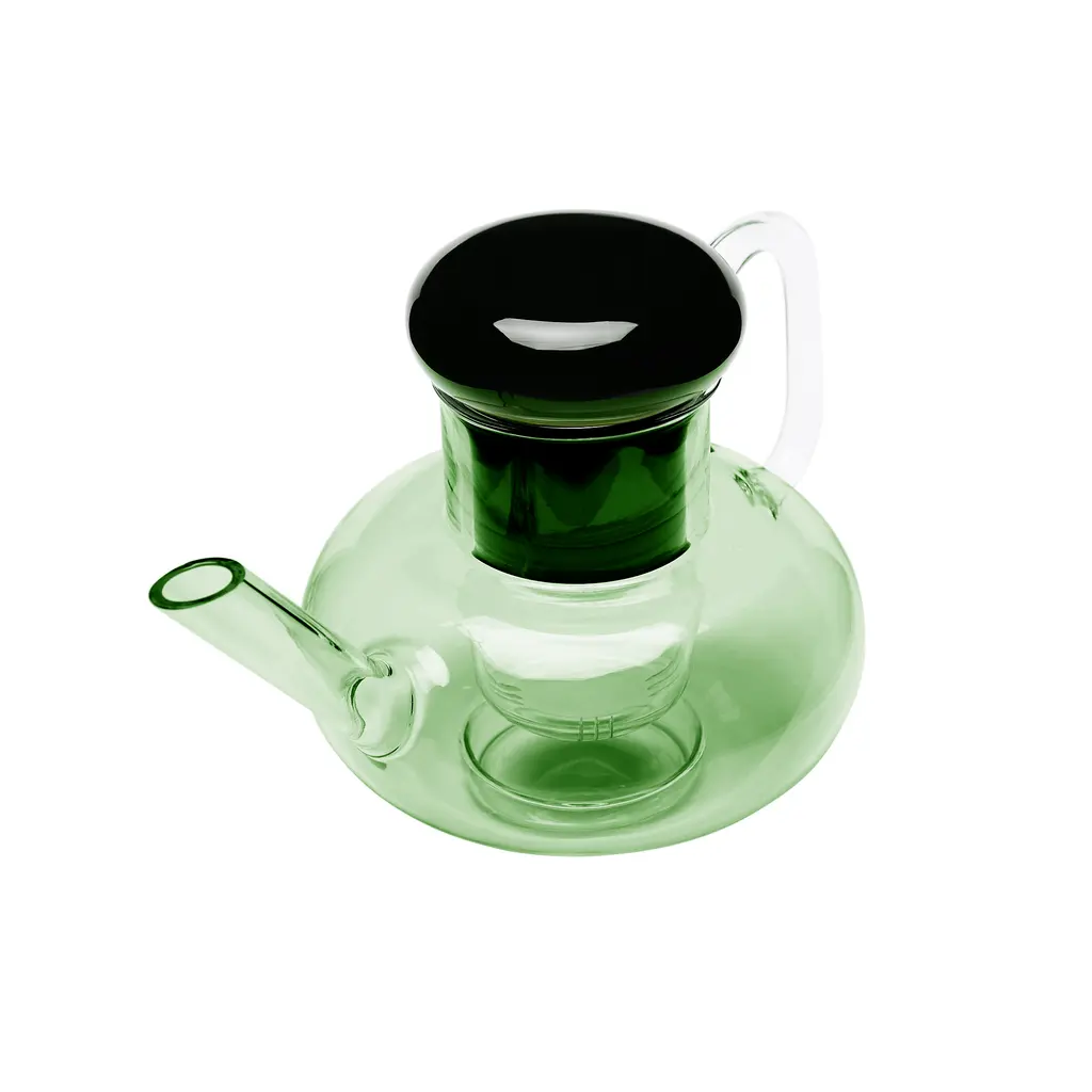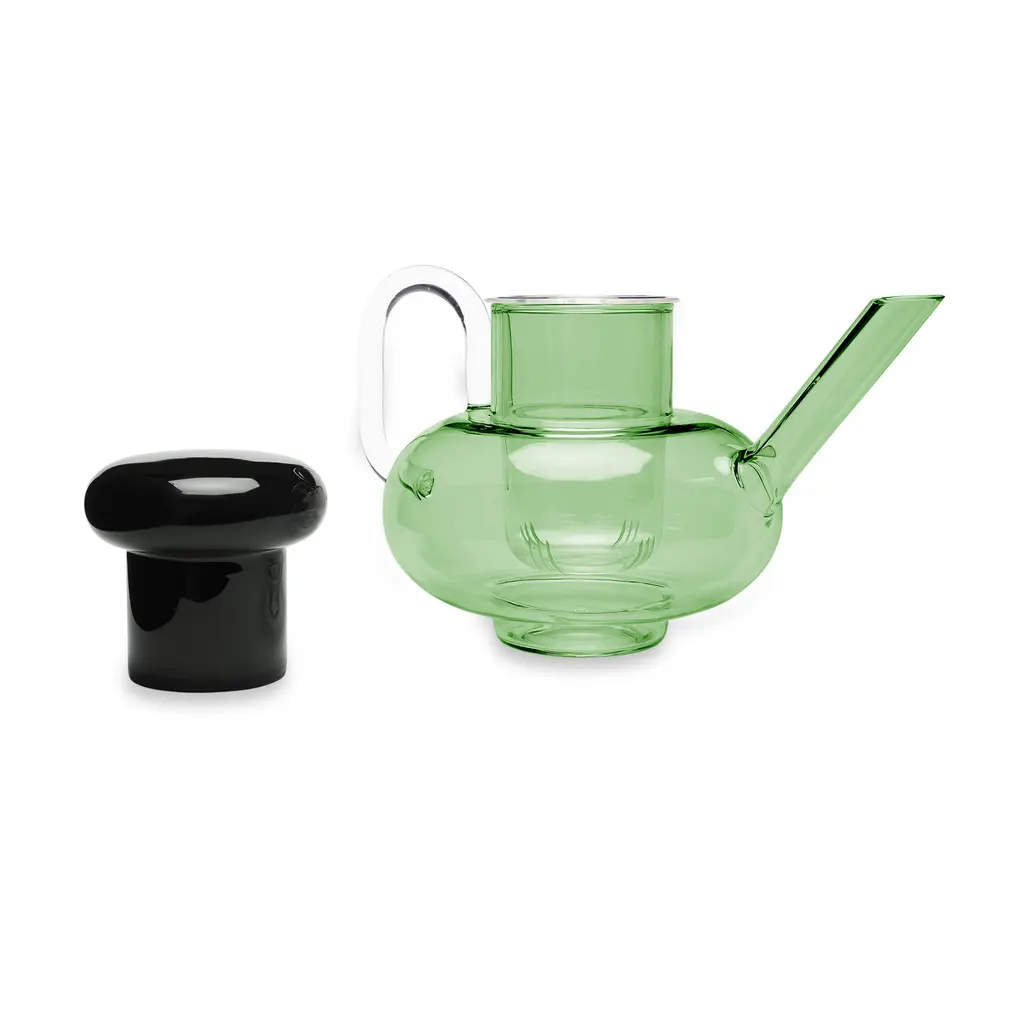 When a product has character, it has a value that goes beyond function and style. To see what this means, simply take a look at the Bump Tea Pot from the Tom Dixon collection. The playful design with shapes that reference scientific glassware can brighten any table setting, while the colored glass adds another dimension to the classic tea pot design. An exploration of spherical and tubular shapes, the Bump Tea Pot is as bold as it is creative. The heat-resistant borosilicate glass boasts two colors: light green on the bottom section and spouy, glossy black on the top and clear hamdle. Like all of the other products from the Bump line, this tea pot is handmade from mouth-blown glass. A matching tea cups set is also available