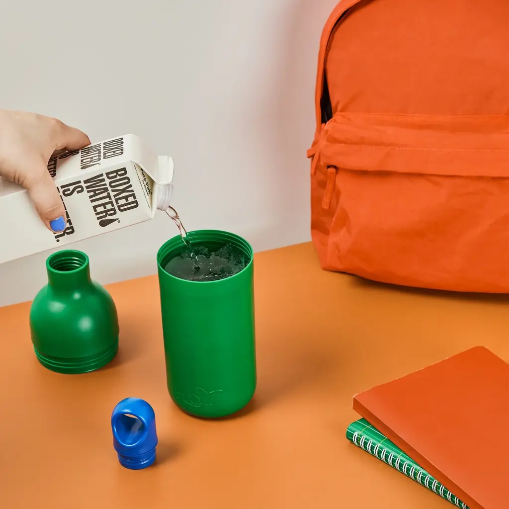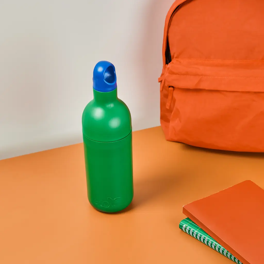 MoMA Exclusive: A beautiful way to contribute to sustainability. This large water bottle is made in California from 100% recycled ocean plastic recovered from coastal regions, and is produced with little or no waste. The vessel opens at its widest point for ease in cleaning or adding ice cubes. The finger loop at the top of the bottle allows for easy carrying and can also be attached to a carabiner. The recycled plastic is HDPE that’s BPA-free and food-grade certified. The bottle features a contrast cap in colors chosen exclusively for our customers. The Buoy Ocean Plastic Recycled Water Bottle measures 11h x 3"diam. and holds 30oz. Dishwasher-safe.