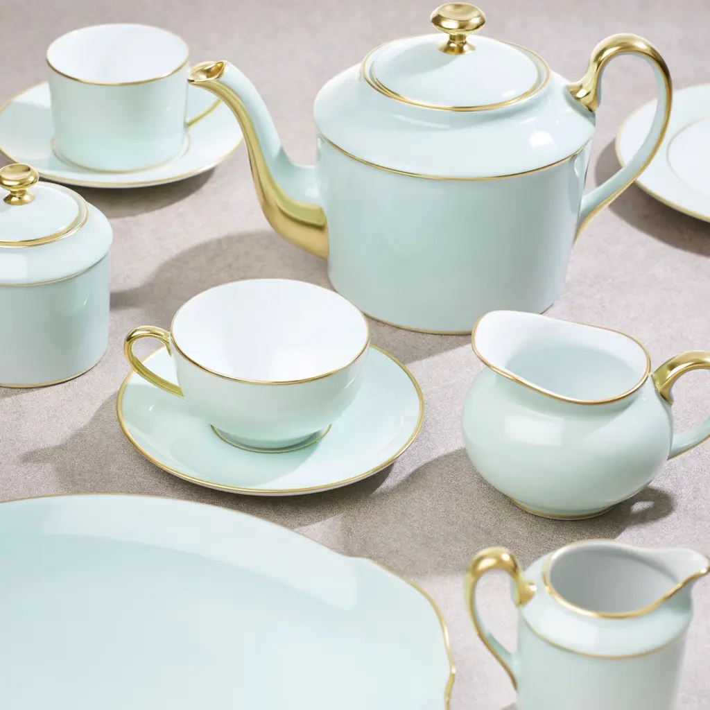 Exuding timeless elegance, this celadon green butter dish with canard showcases expertise and an elegant vision with its hand-painted flawless finish.Crafted in Limoges porcelain and embellished with a sumptuous 24 karat gold banding, it is sure to make a discerning statement on your table, particularly when paired with other pieces in the Afternoon tea range.