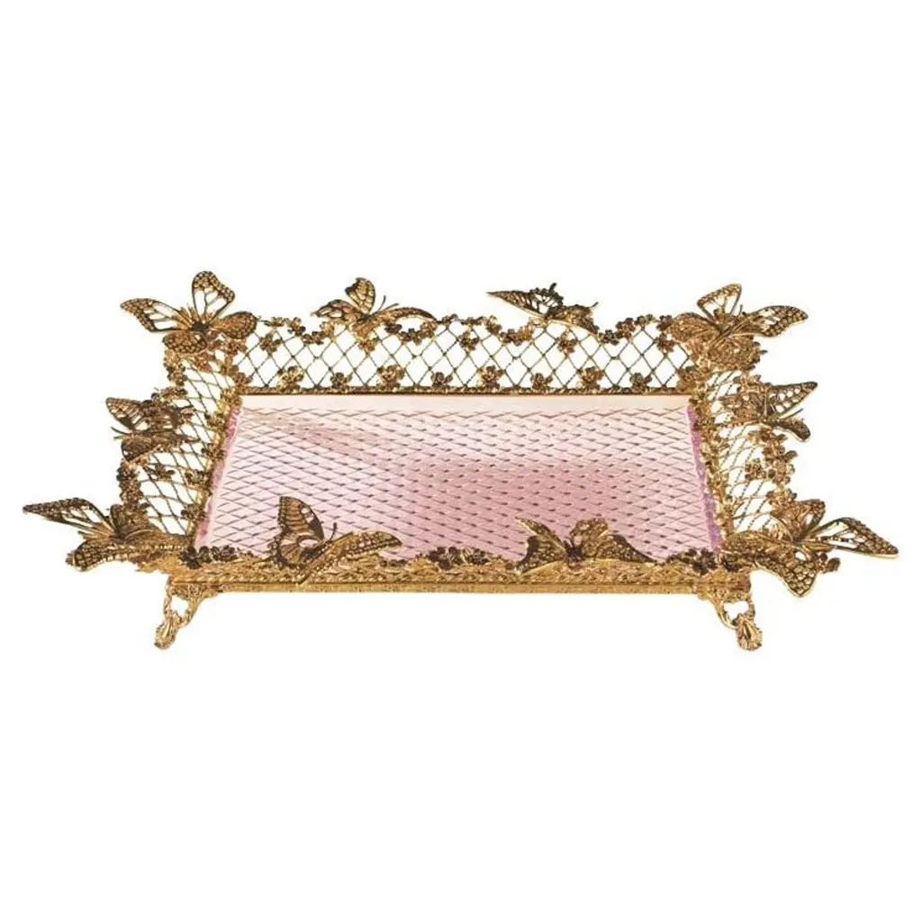 Startle your guests with the lifelike appeal of Arthur Court's Butterfly Flatware Caddy. Finely detailed butterflies, flowers and vines flow brilliantly as they blanket each side of this piece. Heavy lines in the wings and petals define each animal and blossom on the busy caddy. Durable, viny handles make this handmade, aluminum piece both fun and easy to use.