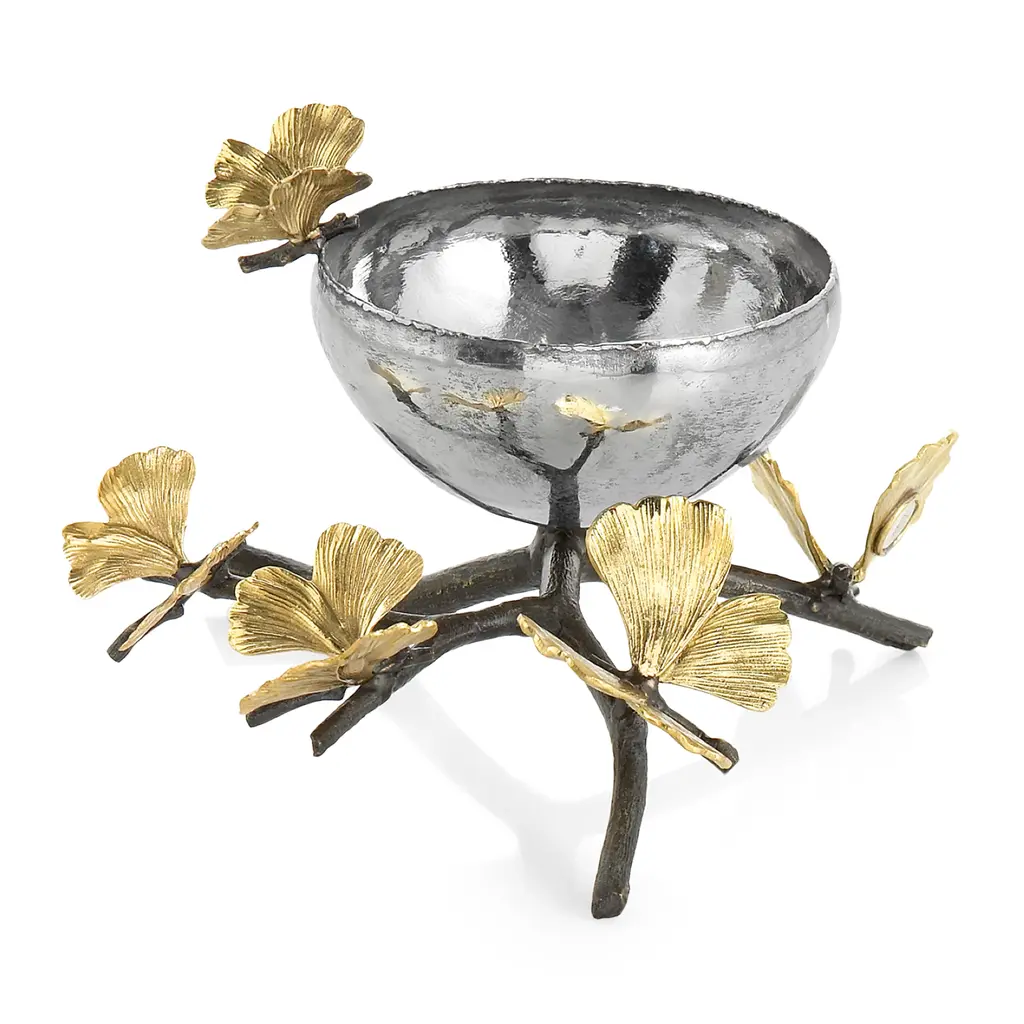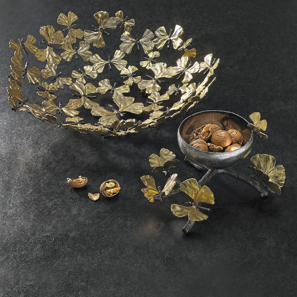 Known for its delicate leaves that resemble butterflies at rest before taking flight, the ginkgo biloba tree was the muse behind Michael Aram's sculptural Butterfly Ginkgo Collection. Each piece is rendered by hand in solid bronze and nickelplate with artfully etched details.