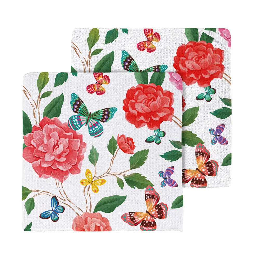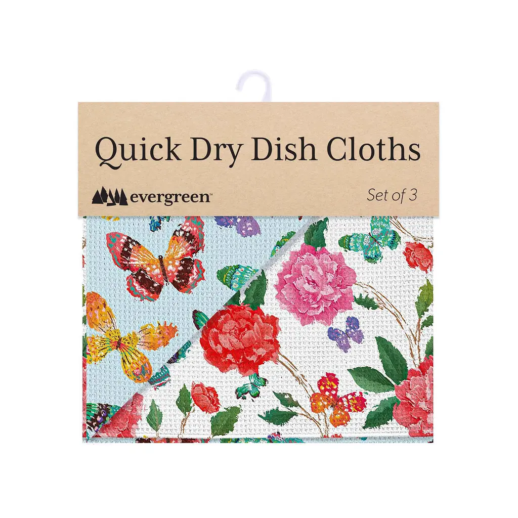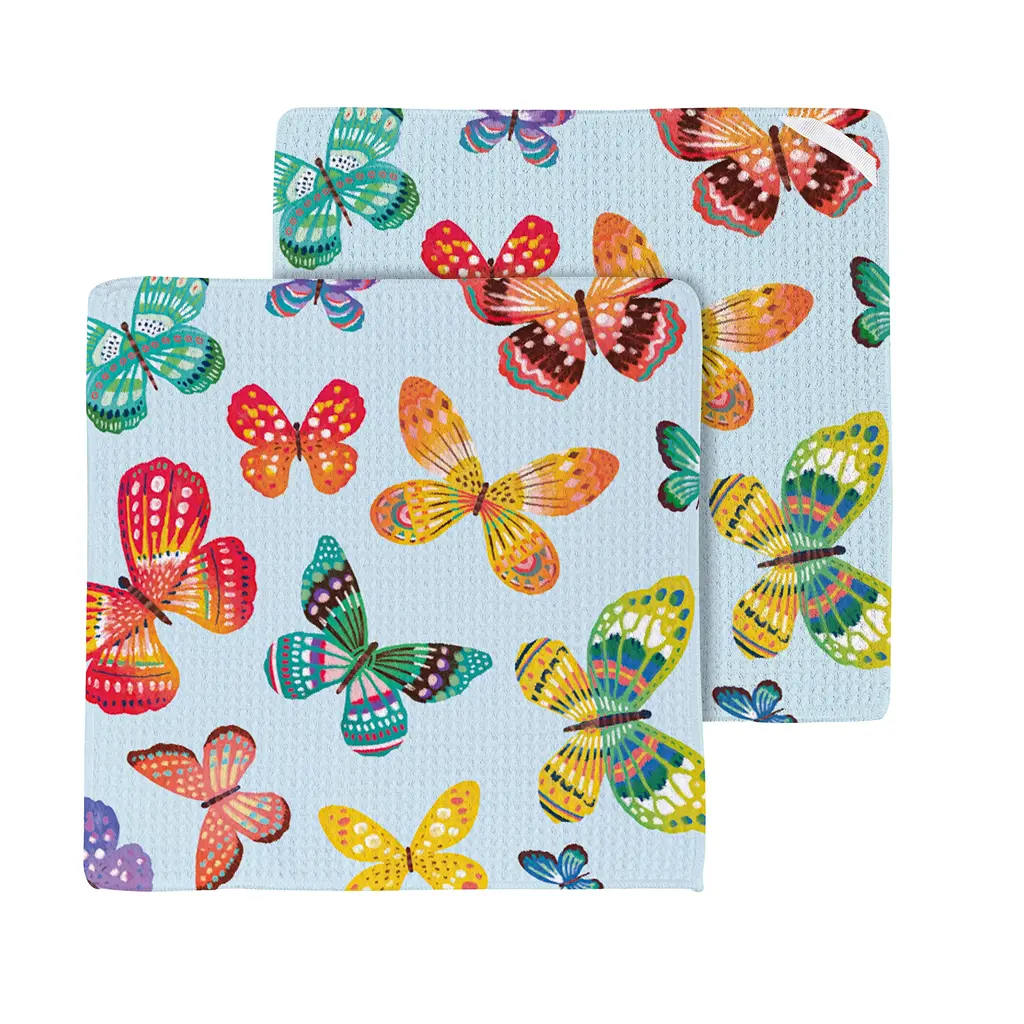 Butterfly Toile Quick Dry Dish Cloth, Set Of 3, 10" X 10"