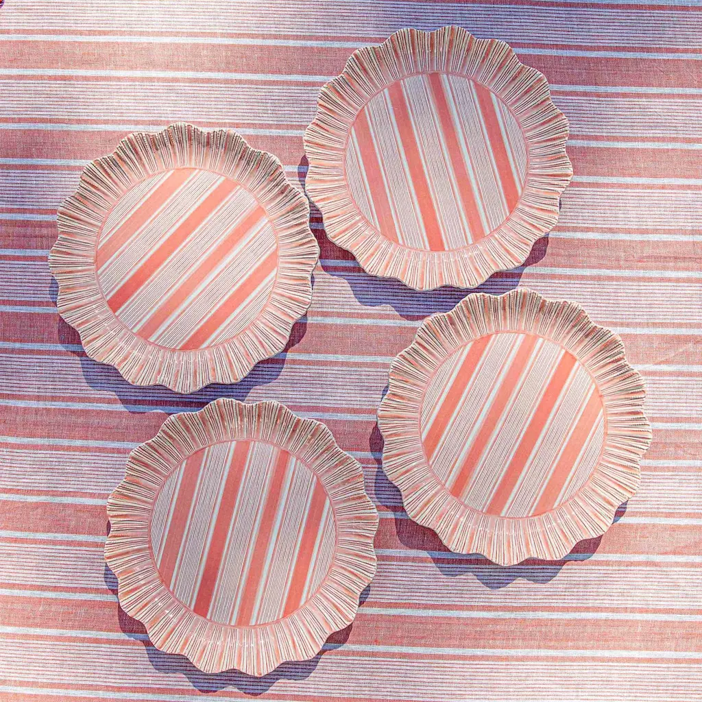 Inspired by idyllic days beside the sea, happy-up any table with the classic cabana stripes of Juliska's Cabana collection of acrylic dinnerware and breezy table linens in candy-colored, sun-drenched hues.