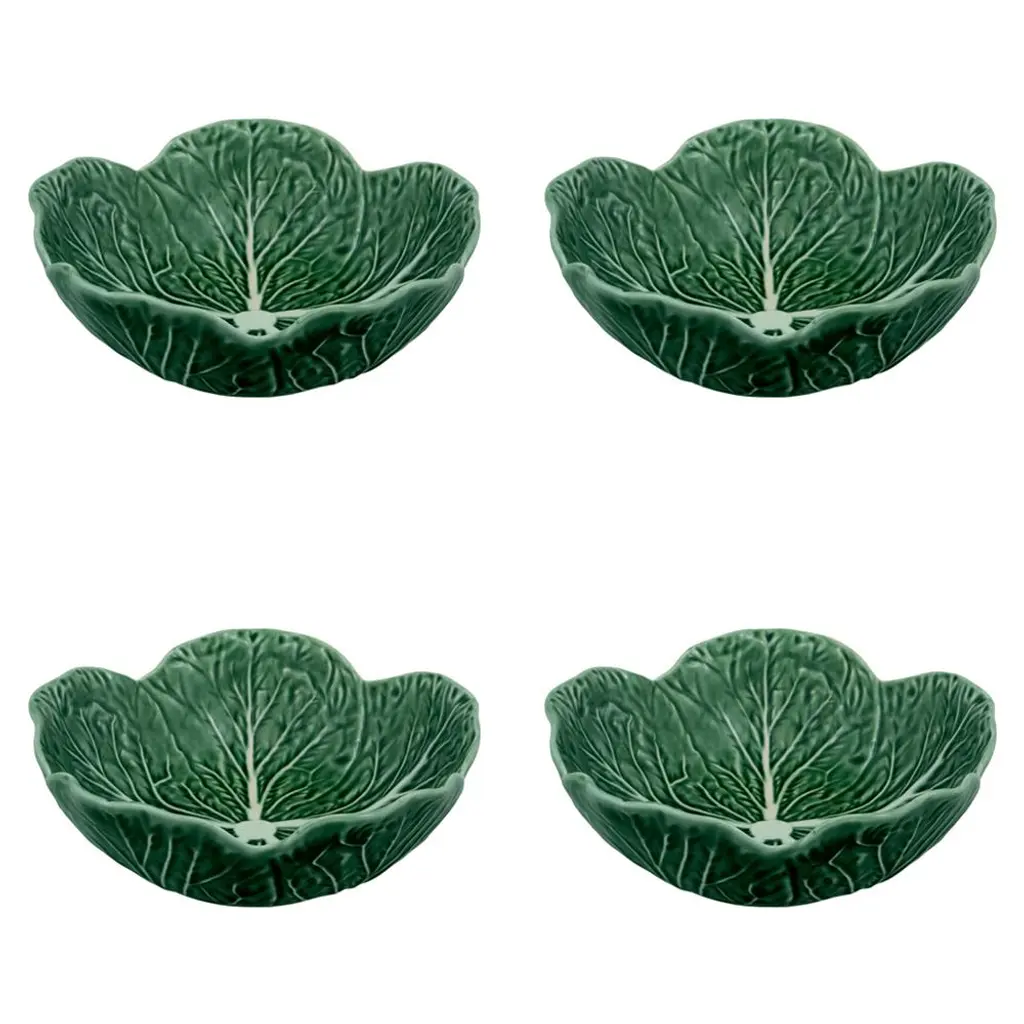 Cabbage French Country Green Stoneware Cereal Bowls - Set Of 4