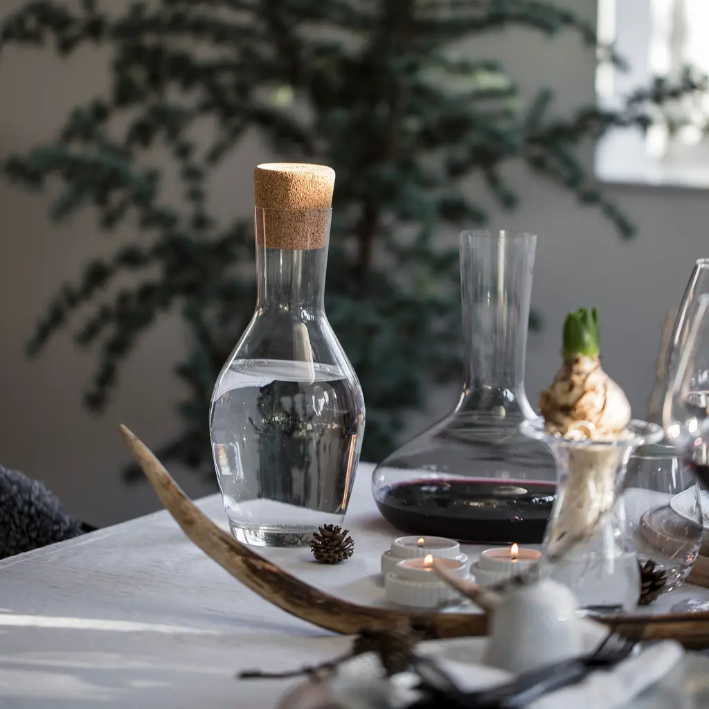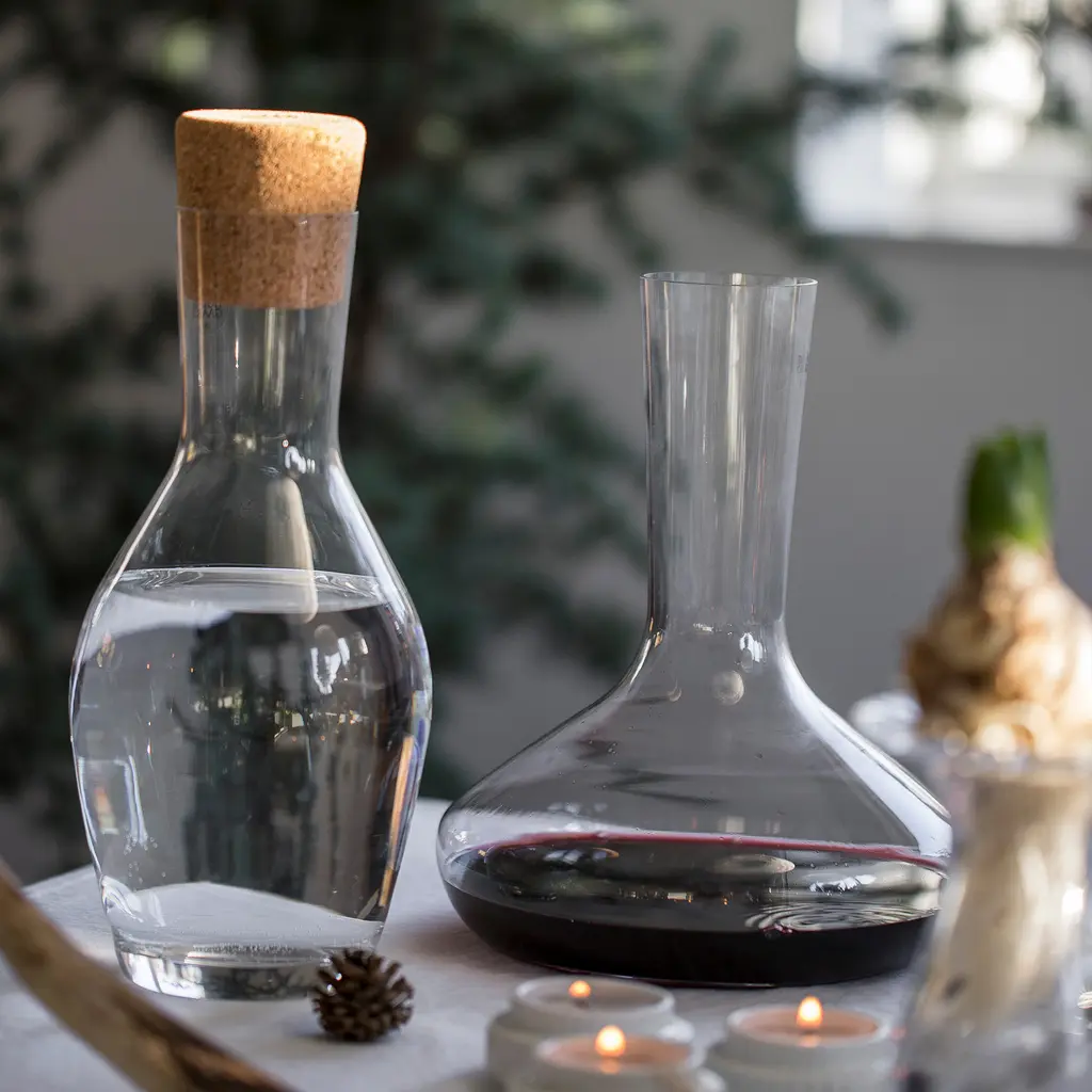 Elegant modernism and everyday functionality make the Holmegaard Cabernet Water Carafe a must-have for your home. Created by Danish designer Peter Svarrer, this water carafe is beautiful, versatile and great for daily use or fancy table settings. The mouth-blown glass is extra-clear and fine but durable and dishwasher-safe. A cork stopper allows you to use the carafe for sparkling water and ensure it remains fresh and bubbly for longer. Thanks to the minimalist design, the Holmegaard Cabernet Water Carafe complements any glasses, but looks at home alongside the matching Cabernet tumblers. Explore the collection to find the perfect glasses for wine, whiskey, cocktails, champagne, and more.