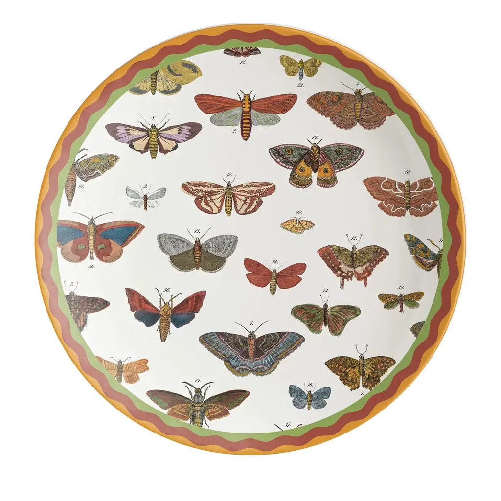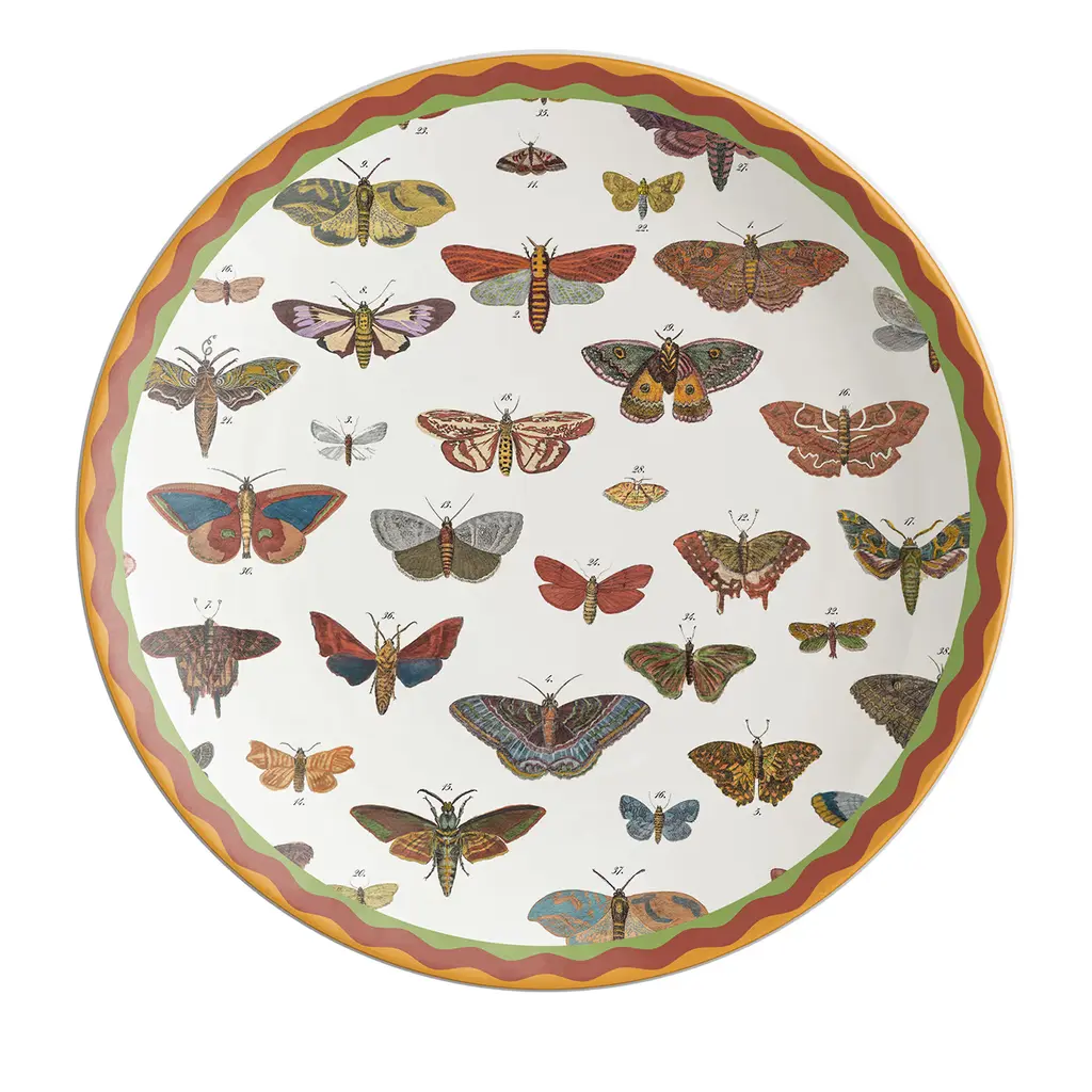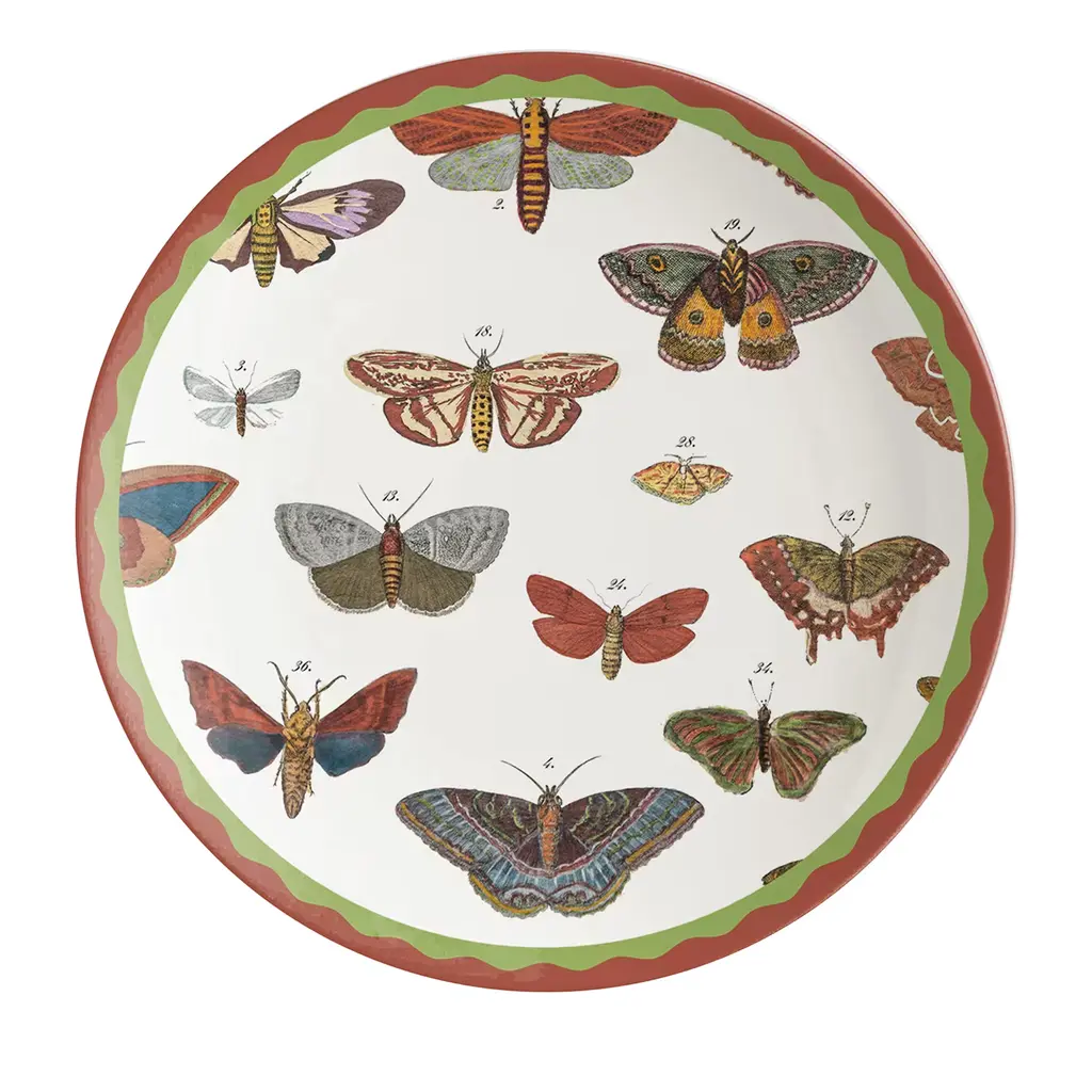 The perfect pair to the Cabinet de Curiosités Butterflies Dinner Plate for a cohesive and stylish addition to a contemporary dining table, this soup plate is also characterized by a stunning handmade decoration of an array of different butterfly species. Handmade of ceramic, it is enhanced with a zig-zag red circle marking its center.