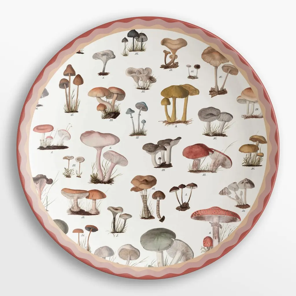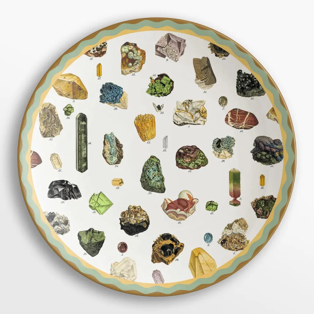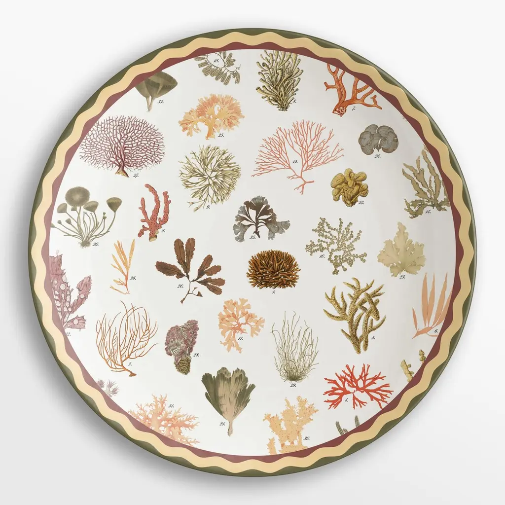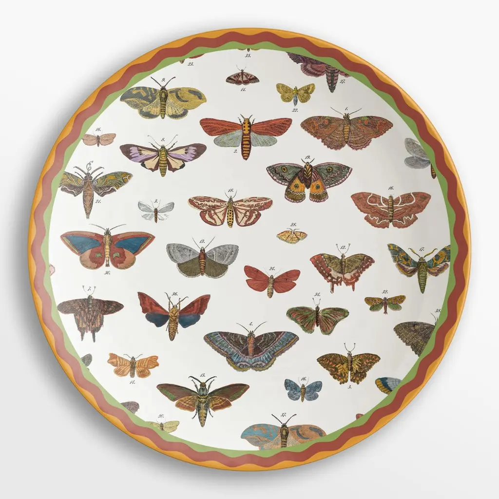 The Cabinet de Curiosités collection takes inspiration from the rooms of the same name which in the sixteenth century collected objects and subjects of various kinds. In this collection, about 450 different elements are divided into 12 families and create 12 different table places consisting of platter, serving plate, soup plate, dessert plate and bread plate. This collection transforms the table into a small museum to be discovered and admired.Set 1 of 2 of six 32cm diameter platters.