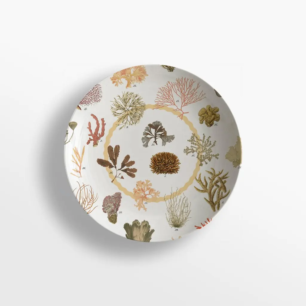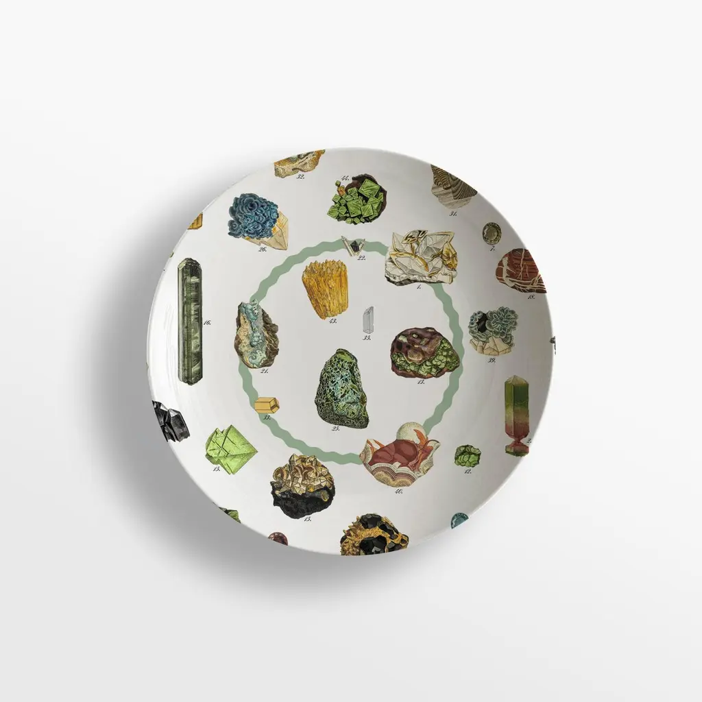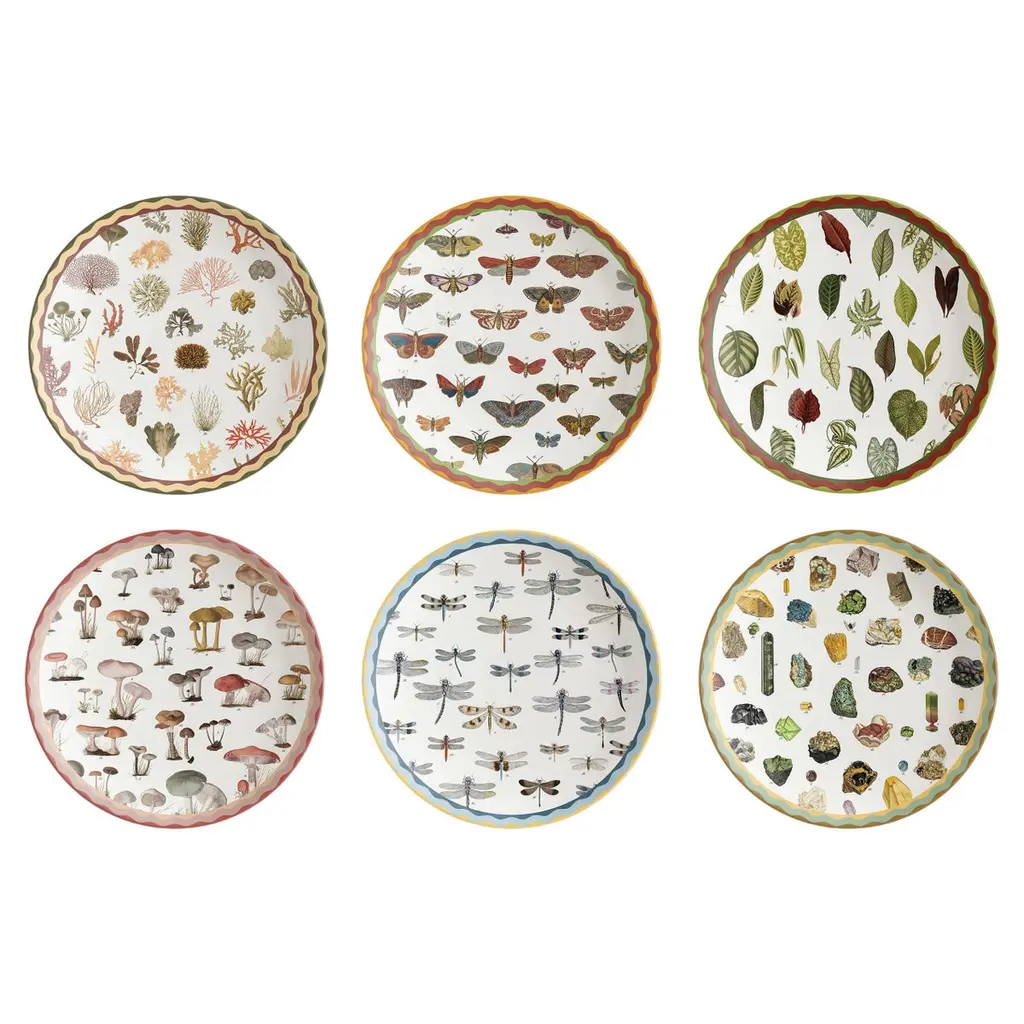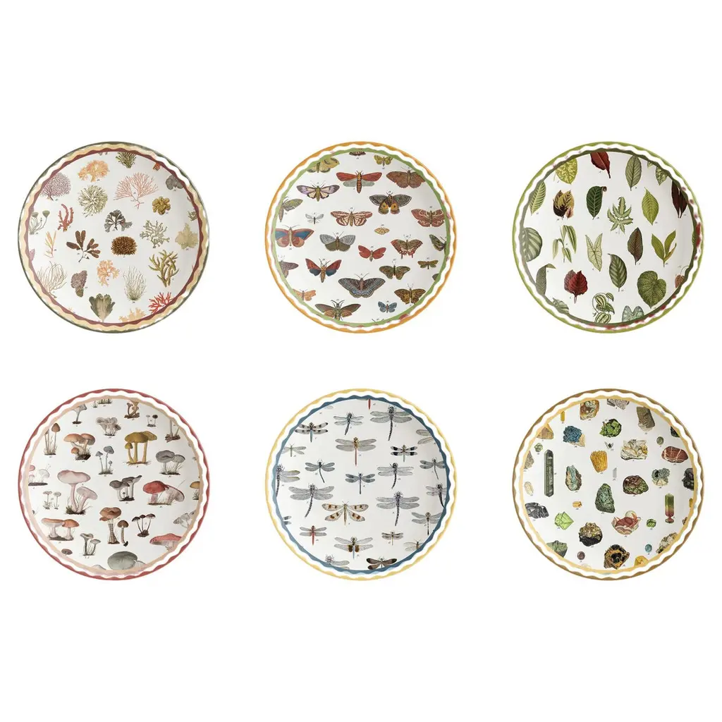 The Cabinet de Curiosités collection takes inspiration from the rooms of the same name which in the sixteenth century collected objects and subjects of various kinds. In this collection, about 450 different elements are divided into 12 families and create 12 different table places consisting of platter, serving plate, soup plate, dessert plate and bread plate. This collection transforms the table into a small museum to be discovered and admired.Set 1 of 2 of six 21cm diameter soup plates.