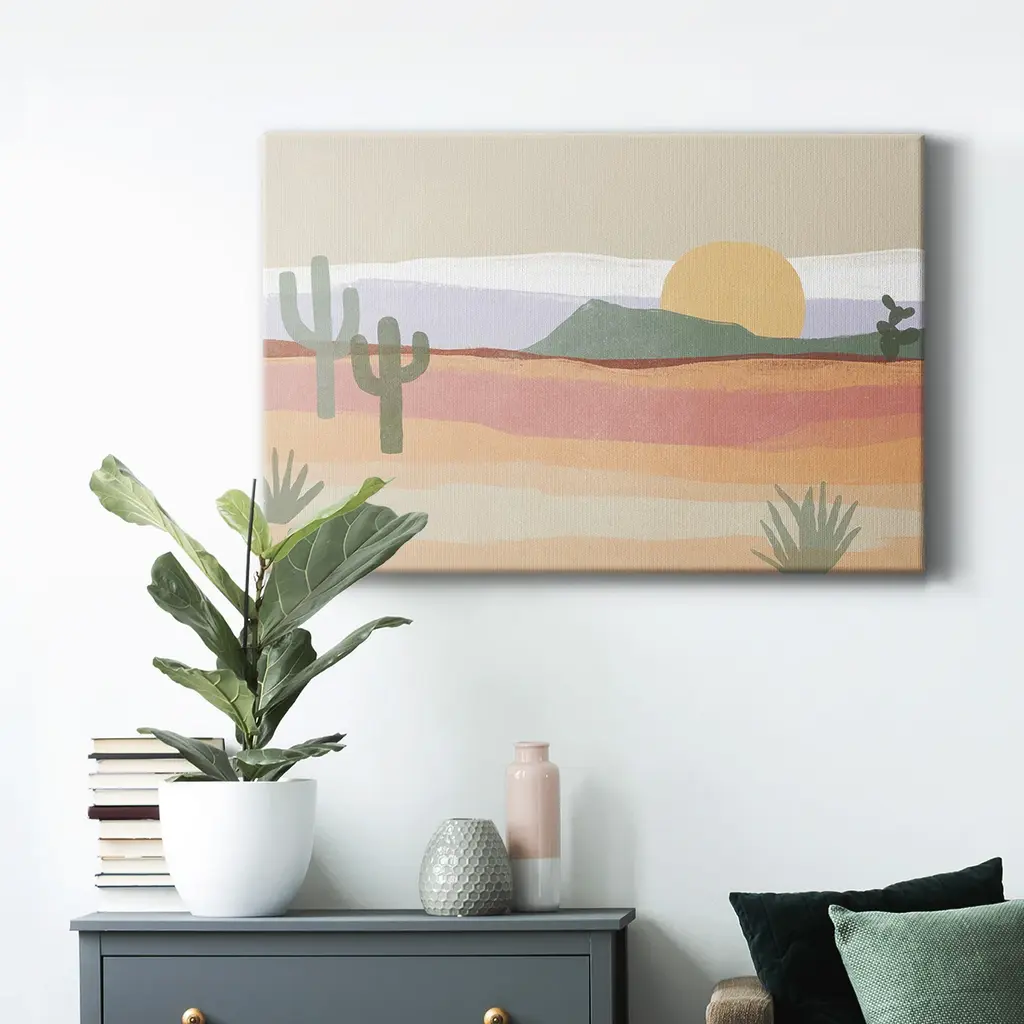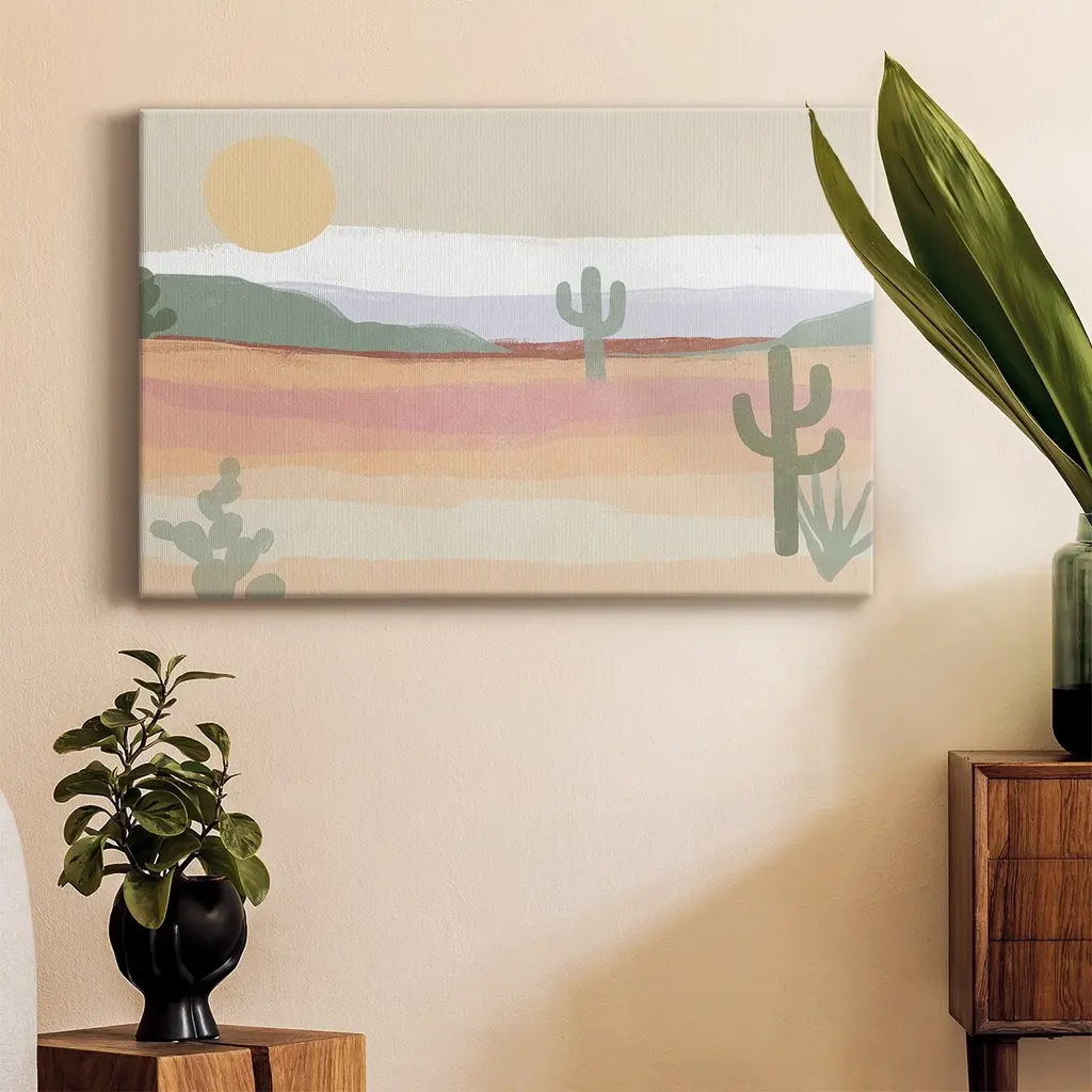 Cactus Plateau I Premium Gallery Wrapped Canvas - Ready to Hang A premium hand stretched gallery wrapped canvas print created to last. Featuring a beveled a solid wood stretcher bar, each piece comes ready to hand 6 SIZES AVAILABLE 8''X12'' - Overall Size 12''X18'' - Overall Size 18''X27'' - Overall Size 24''x36'' - Overall Size 32''x48'' - Overall Size 40''x60'' - Overall Size Each piece is made to order. Built to Last Each piece comes ready to hang Solid wood stretcher Fade and Water resistant Made domestically