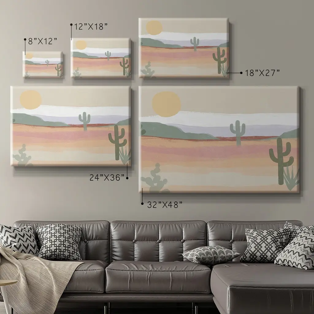 Cactus Plateau II Premium Gallery Wrapped Canvas - Ready to Hang A premium hand stretched gallery wrapped canvas print created to last. Featuring a beveled a solid wood stretcher bar, each piece comes ready to hand 6 SIZES AVAILABLE 8''X12'' - Overall Size 12''X18'' - Overall Size 18''X27'' - Overall Size 24''x36'' - Overall Size 32''x48'' - Overall Size 40''x60'' - Overall Size Each piece is made to order. Built to Last Each piece comes ready to hang Solid wood stretcher Fade and Water resistant Made domestically