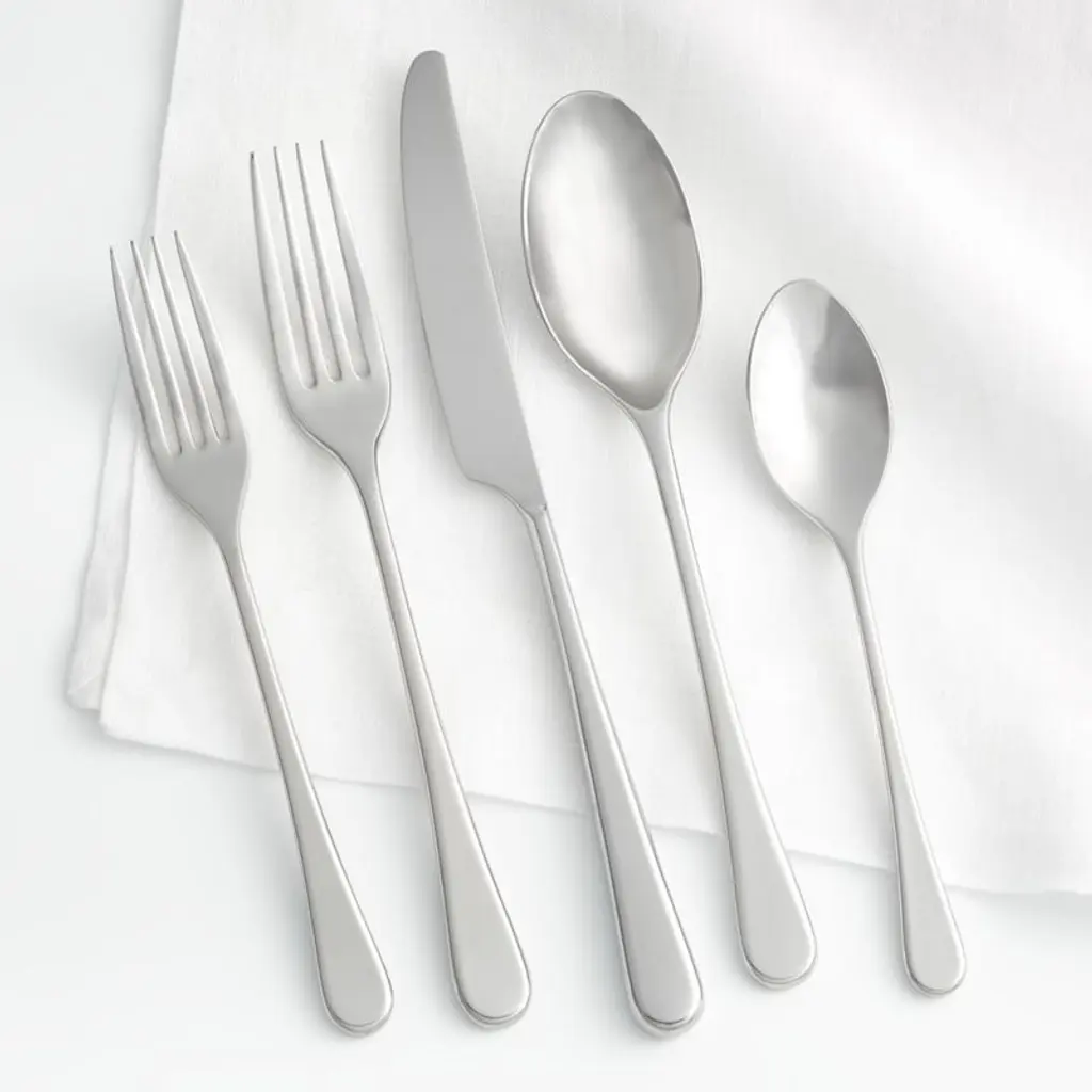 A sumptuous finish on our classic Caesna flatware makes a light-reflecting statement on the table. Inspired by round hammer planishinga silversmithing technique in which silver is textured with a hammer to create the look of polished facetsthis placesetting looks and feels luxurious. The five-piece stainless steel flatware set is well-balanced with a comfortable heft. A pleasure to hold and behold, this versatile, classically styled pattern designed by Robert Welch elevates any table setting.