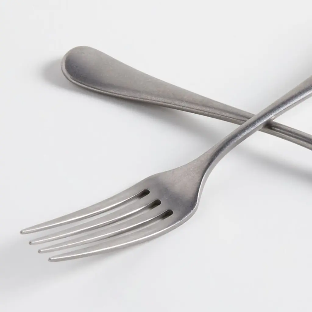 Tumbled to create a pebble-smooth surface, this flatware set is finished to a vintage-inspired soft luster. Each five-piece stainless steel place setting is well-balanced with a comfortable heft. A pleasure to hold and behold, this versatile, classically styled pattern by Robert Welch complements any table setting.