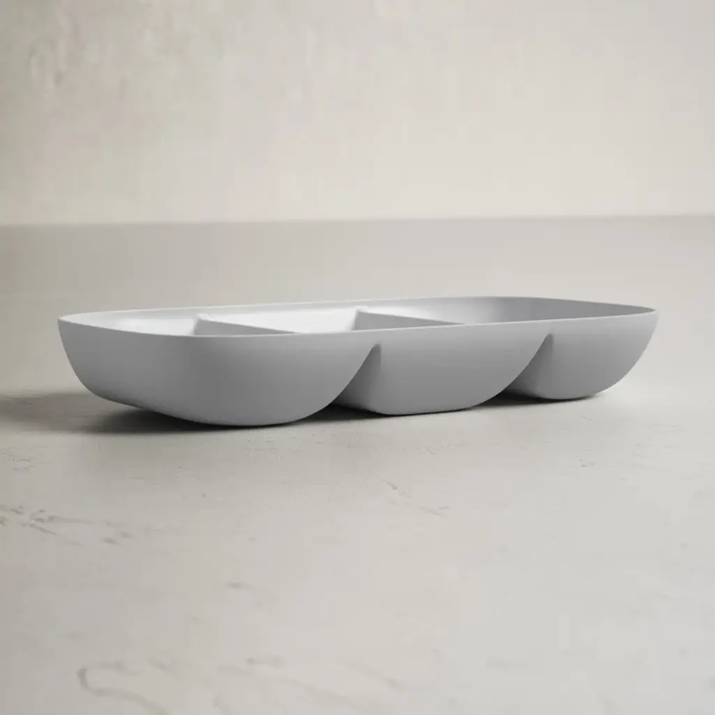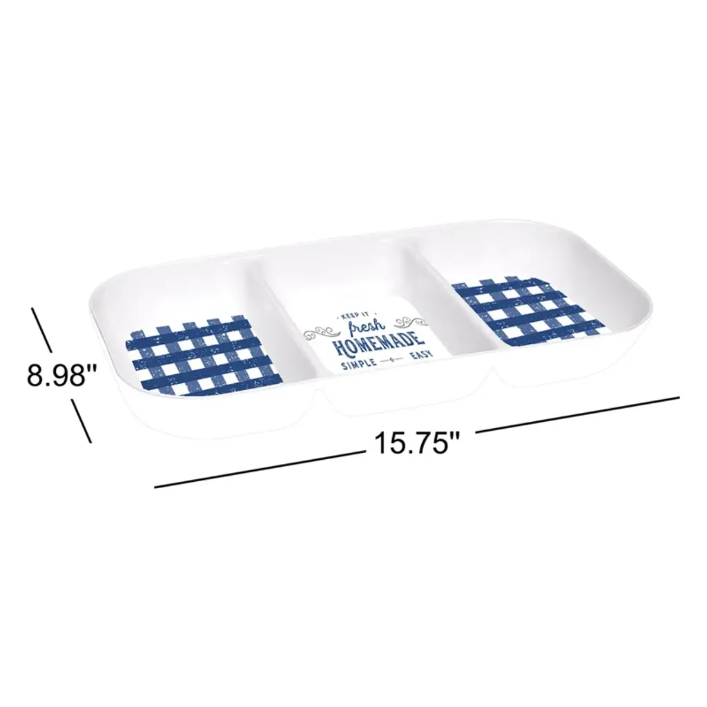 Serve your guests in style with this divided melamine serving dish. The rectangular dish features three compartments, perfect for serving a variety of dishes. Made of durable melamine, it is perfect for outdoor use, so you can carry it from the kitchen to the patio. Plus, this serving dish has a PTFE-free design, making it perfect for holding your favorite candies or snacks. Something to keep in mind: It's not microwave- nor oven-safe, but you can throw it in the dishwasher after mealtime.