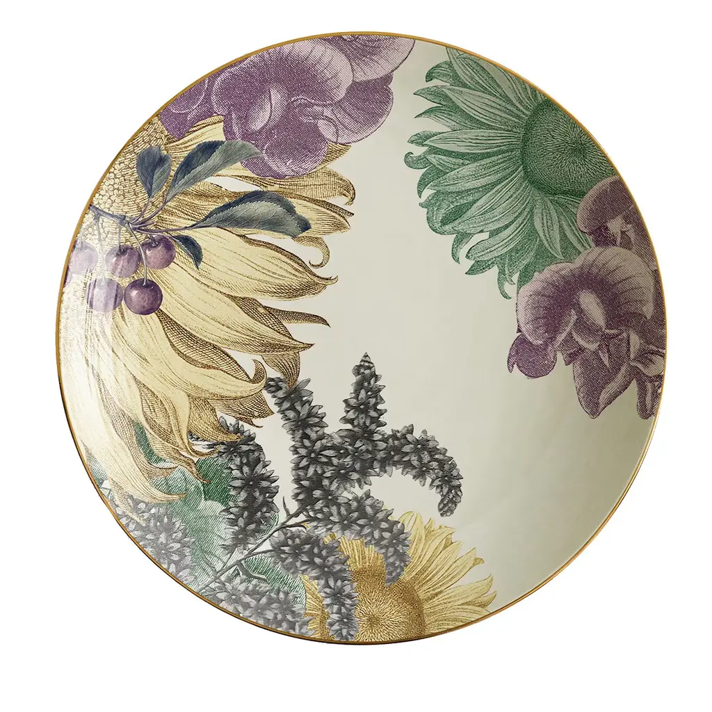 Lively yet delicate colorful flowers bloom on the surface of this splendid porcelain soup plate, infusing any traditional or modern decor with warm sophistication. Handcrafted of fine porcelain, it is part of a series inspired by the colors and landscapes of North Africa captured by artist Vito Nesta on his many travels.