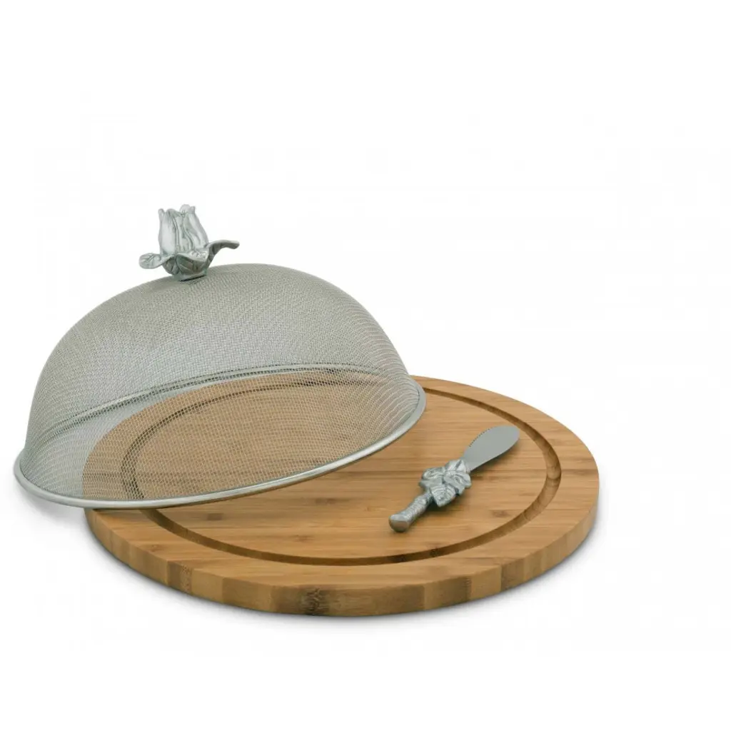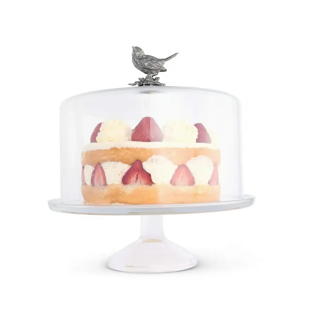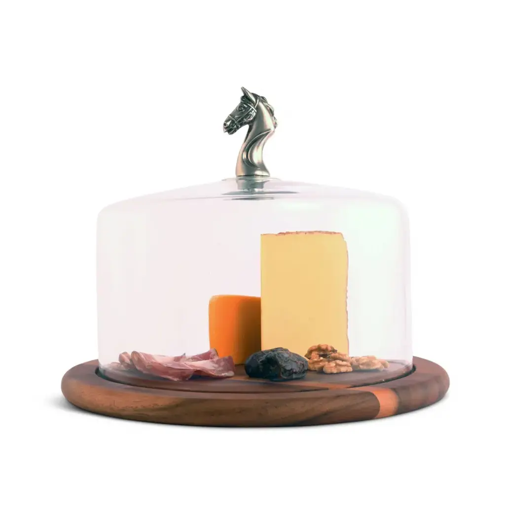 Add an upscale flair to your parties, housewarmings, weddings or baby showers with Vagabond House's elegant and high quality glass cheese / dessert stand. Made from hand-blown, sturdy glass combined with artfully hand-crafted solid and lead free pewter honey bee knob, this stand will draw admiring eyes to your tasty creations, without overpowering them. Choose from two heights of glass stands or the flat wood board. Mix and match to form multi level display. Vagabond House is a family-owned American company specializing in fine pewter tableware, servingware and giftware. Largely inspired by nature, their exclusive products are designed to be unique, functional heirlooms for those who seek to express tradition and style in both family and formal entertaining.