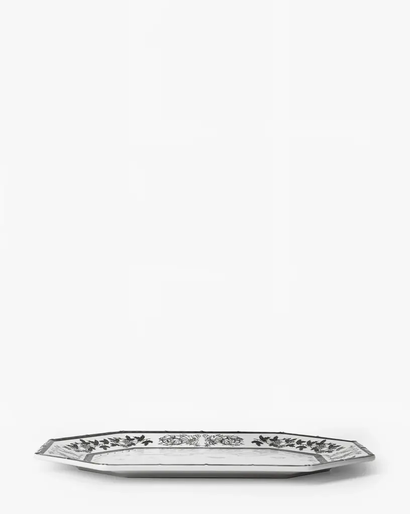 Blending classic design with practical ease, the Calanthe Melamine Serving Platter features a delicate floral border and rich black rim for a timeless look. Crafted from durable, shatter-resistant melamine, it's ideal for both indoor feasts and alfresco gatherings.