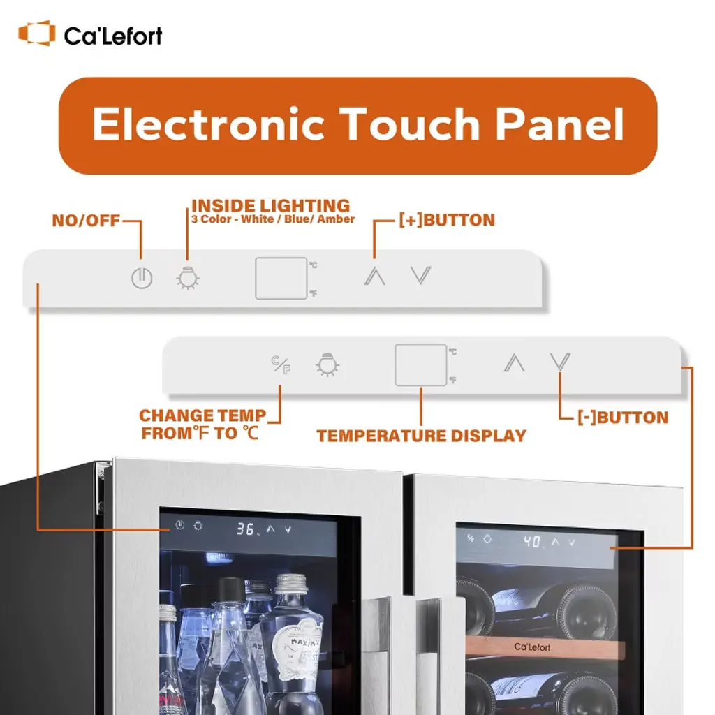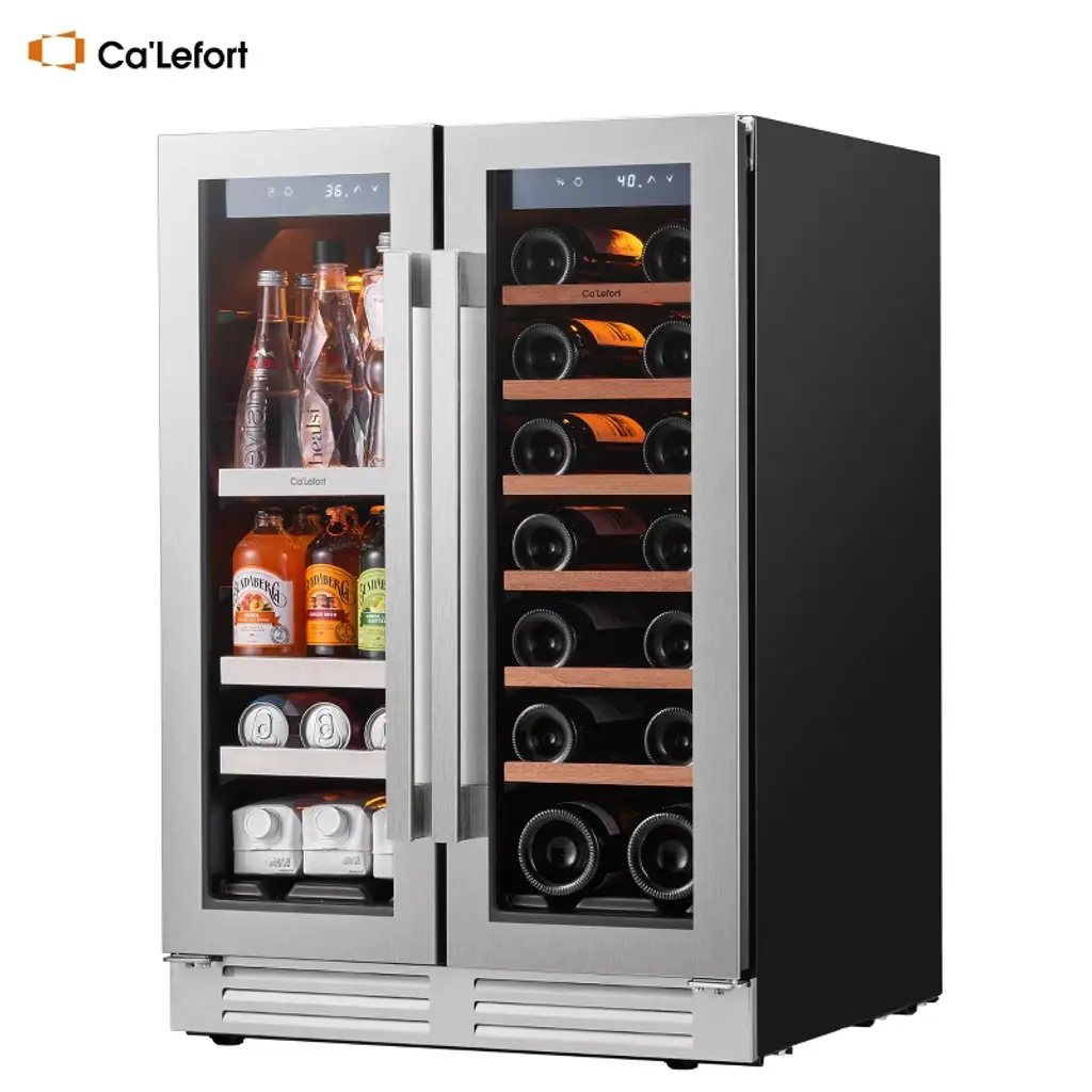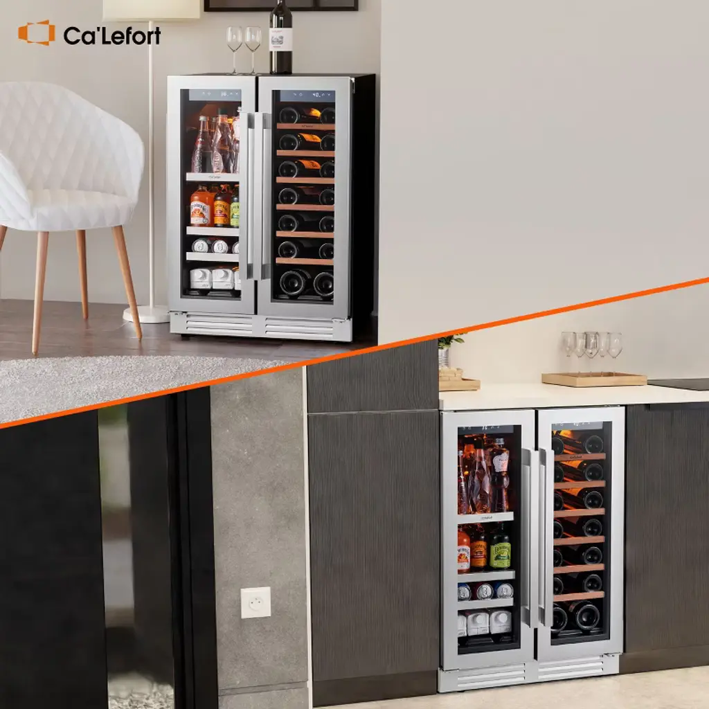 Ca'lefort 24" Dual-zone Wine/beverage Fridge, Holds 60 Cans/20 Bottles, Glass Door, 3 Led Lights, Adjustable Shelves, 4.1 Cu.ft