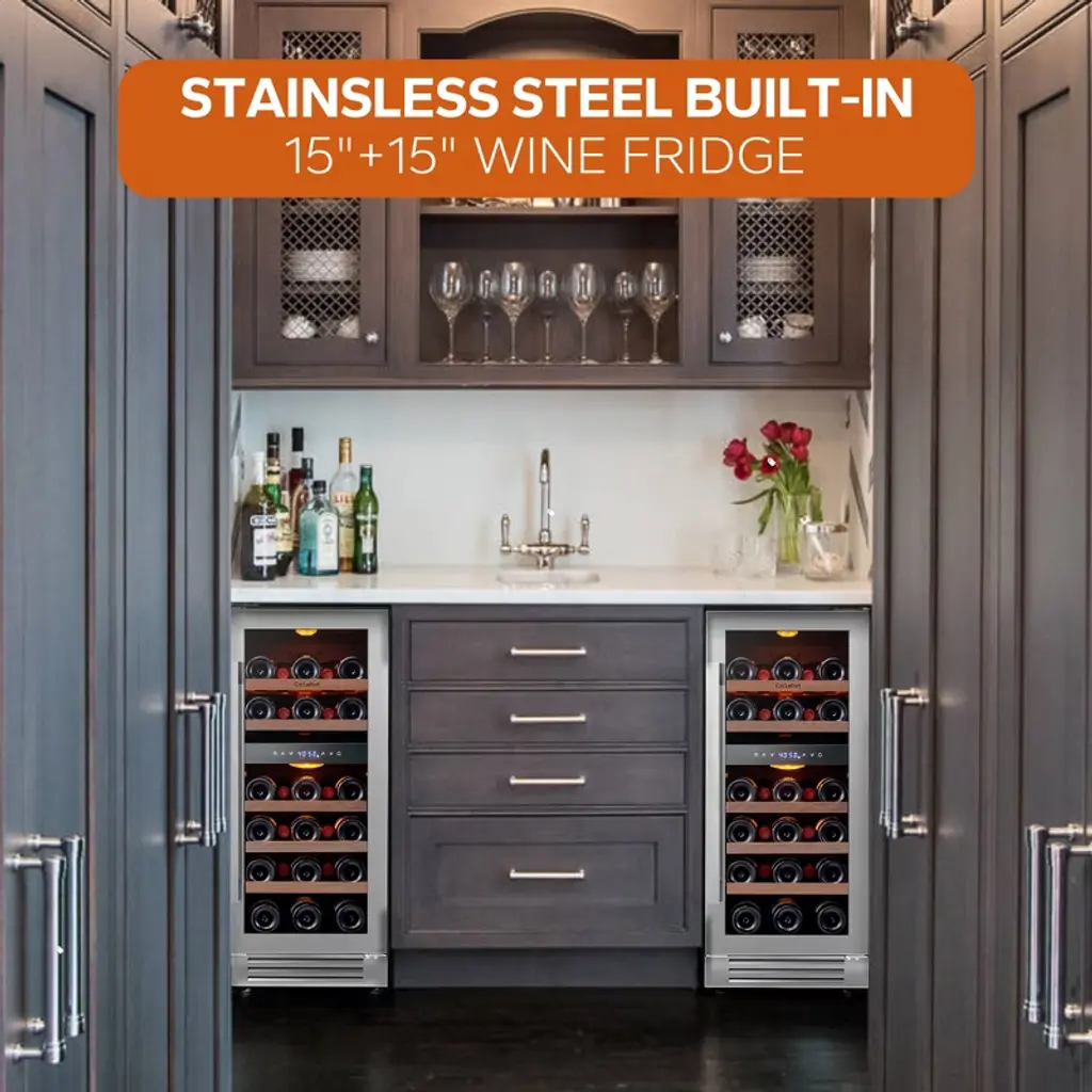 Ca'lefort Dual 15" Dual Zone Wine Fridge Combo,56 Bottle Wine Cooler Refrigerator,freestanding Or Built-in For Kitchen Office