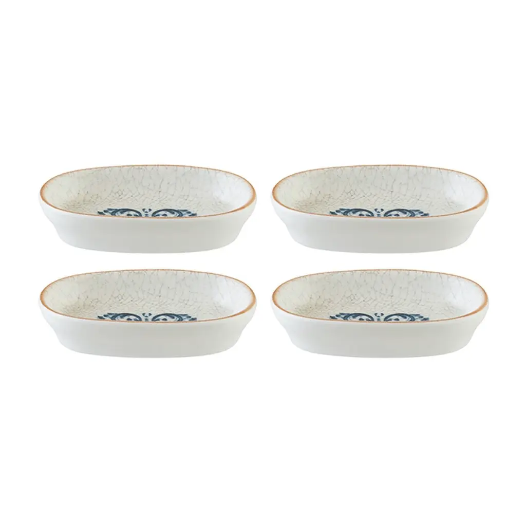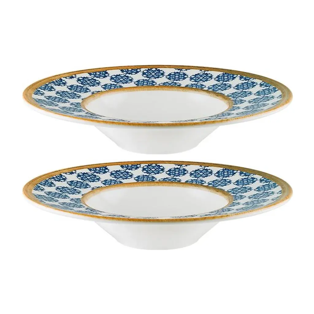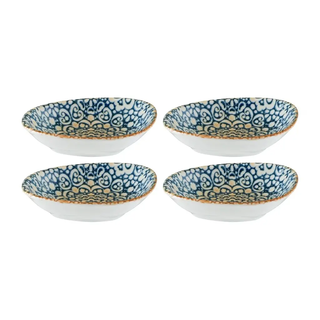 Calif Round Decorated Porcelain Salad, Pasta Bowl, Set Of Four