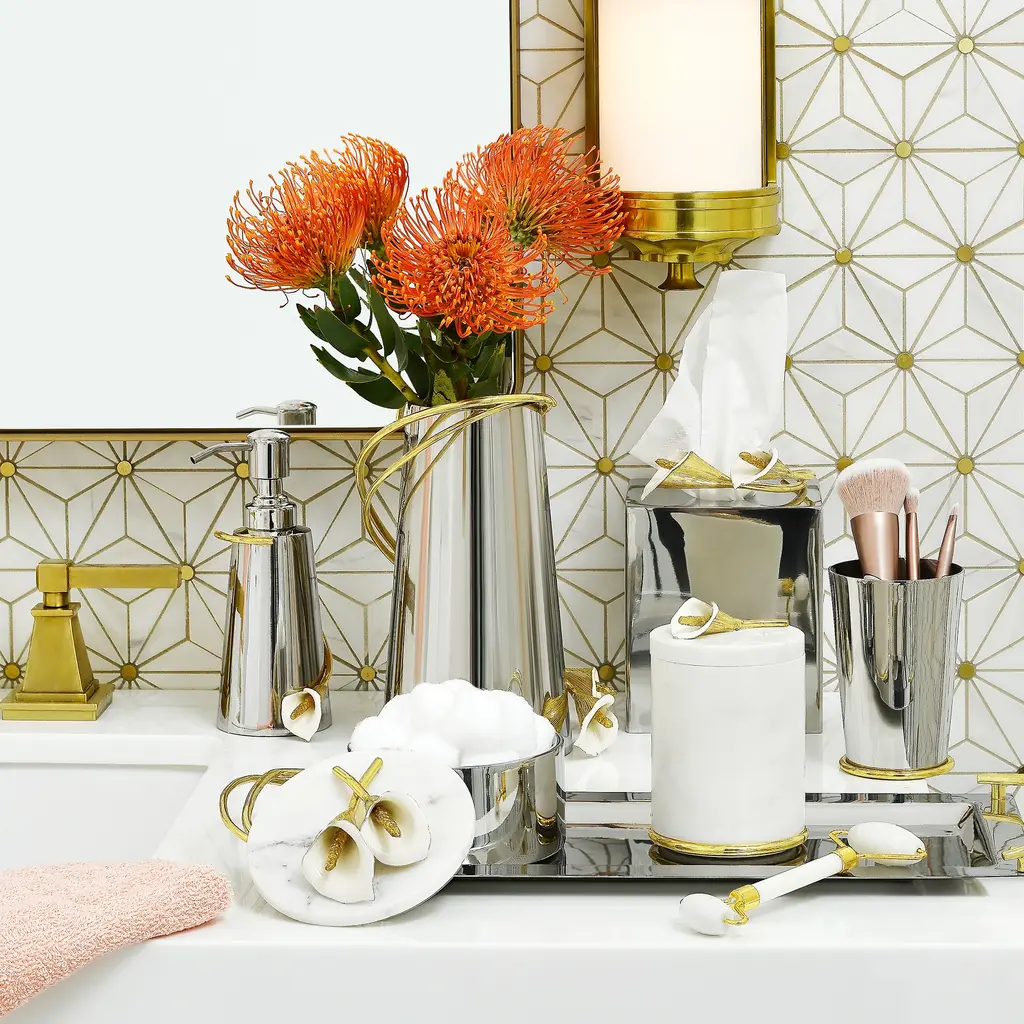 Inspired by the contemporary romance of the flower, Michael Aram's Calla Lily collection pairs classic, timeless materials with modern design.