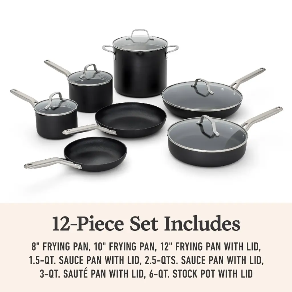 Calphalon 12pc Hard Anodized Aluminum Nonstick Cookware Set: Oven-safe, Dishwasher-safe, Gas & Electric Compatible