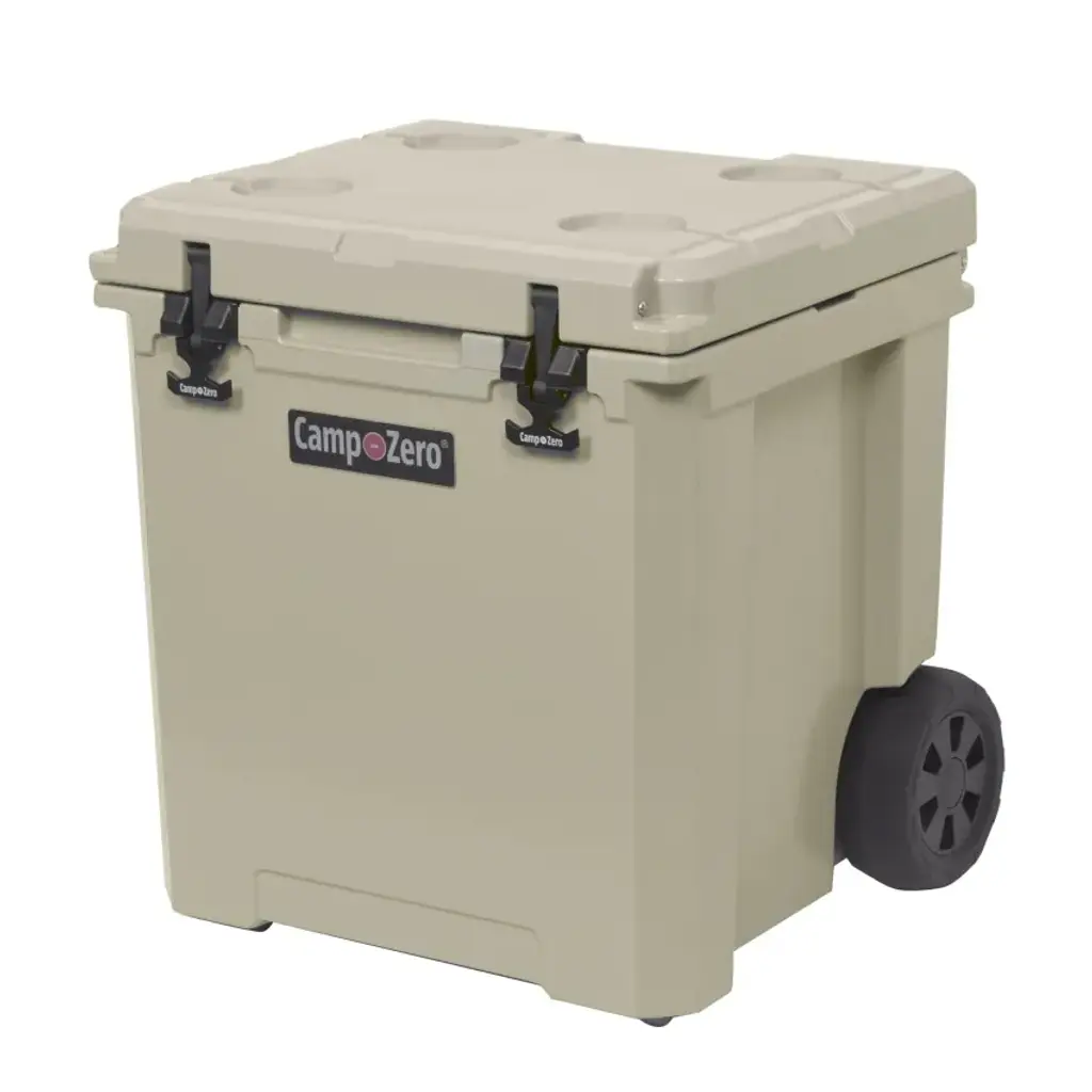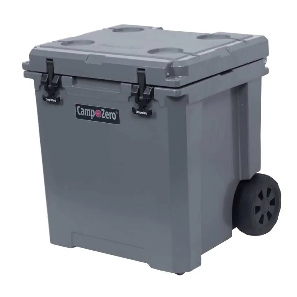 Camp-Zero 50 - 52 Quart Chest Cooler With Easy-Roll Wheels And 4 Molded-In Cup Holders - Grey