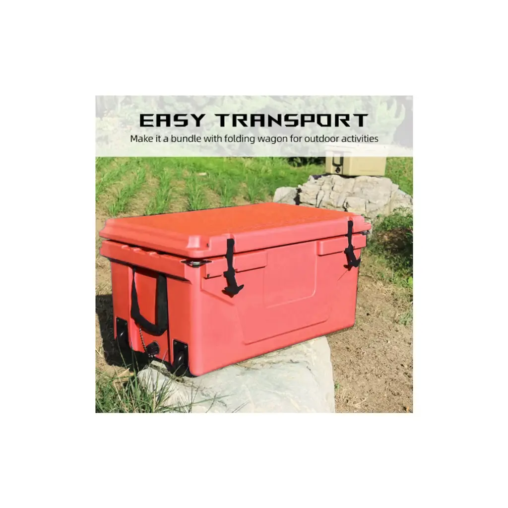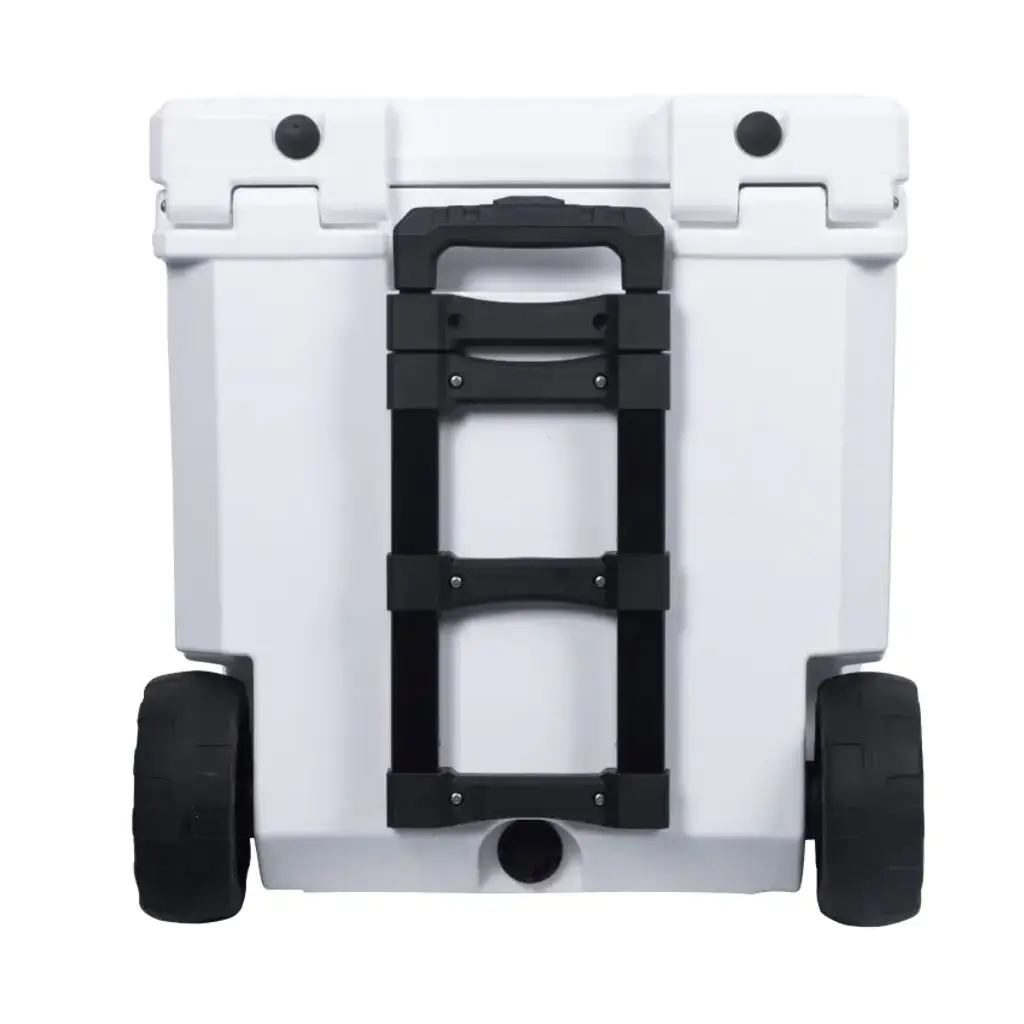The 50L wheeled cooler is the perfect cooler for all your adventures. The easy-roll oversized wheels with sturdy telescoping handle makes this cooler the ideal for camping, beach, boating, fishing, hunting or any Ruggedly Cool adventure. The rotomolded construction with molded-In latching and locking system, oversized easy-roll wheels, extendable aluminum handle makes this cooler the perfect choice.