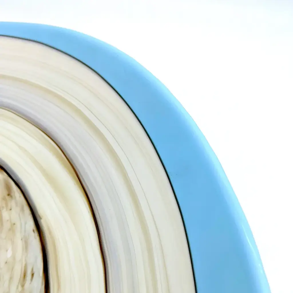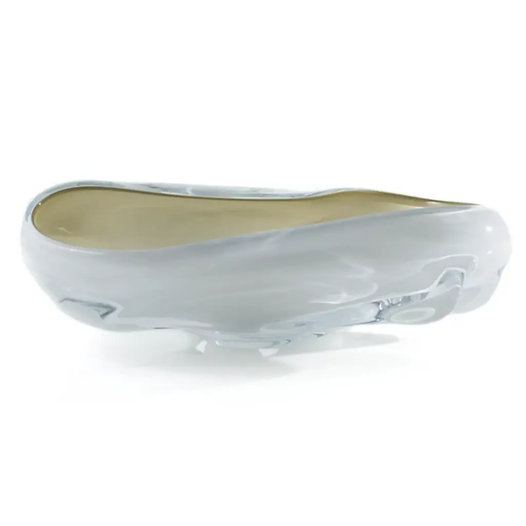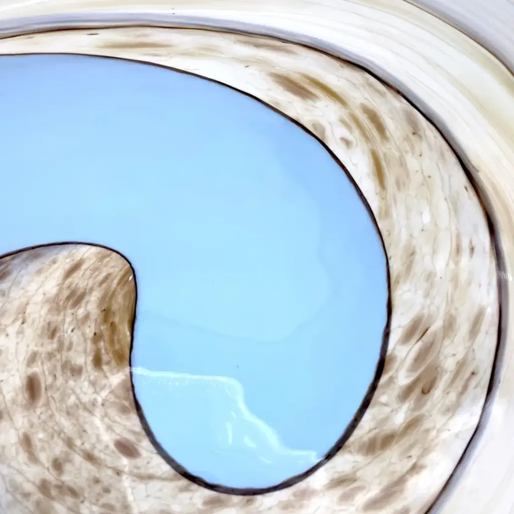 Add a stunning touch of modernity to your dining table with the CAMPIEO ivory blue Murano glass plate, featuring a bent shape and captivating design. Whether you're looking for an elegant addition to decorate your dining room or an original Venetian glass gift idea to amaze someone, these decorative fruit plates in Venetian glass are the perfect solution! Find the perfect match for your home and create a truly unique and original interior design. All our products are handcrafted and of the highest production quality. Non-substantial variations in shape, size, color, and/or minor imperfections are inevitable and are typical of manual glasswork, highlighting the artisanal craftsmanship.