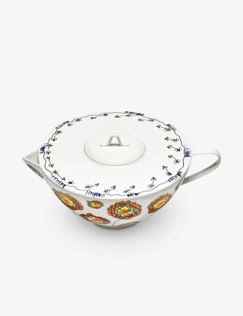 Marni's signature aesthetic finds new expression in this collaboration with Serax, bringing their bold, colorful, and artfully irreverent style to fine bone china. The floral motifs are applied as decals and glazed to give the delicate pattern a lasting finish. With its hand-finished details and timeless shape, this teapot adds a dash of flair to a spot of tea.