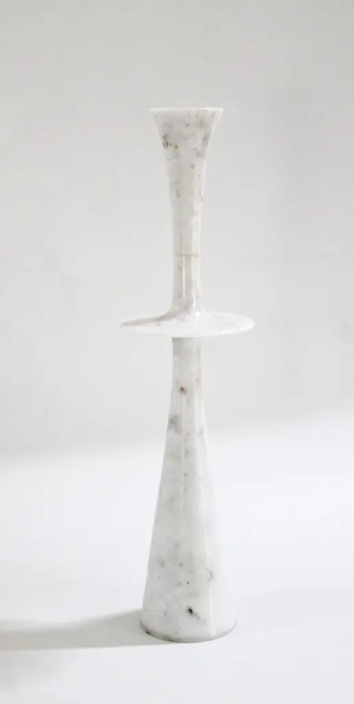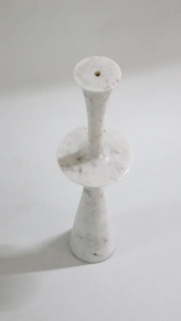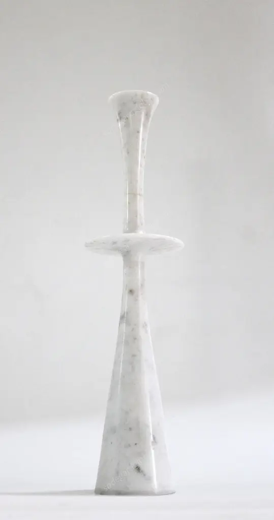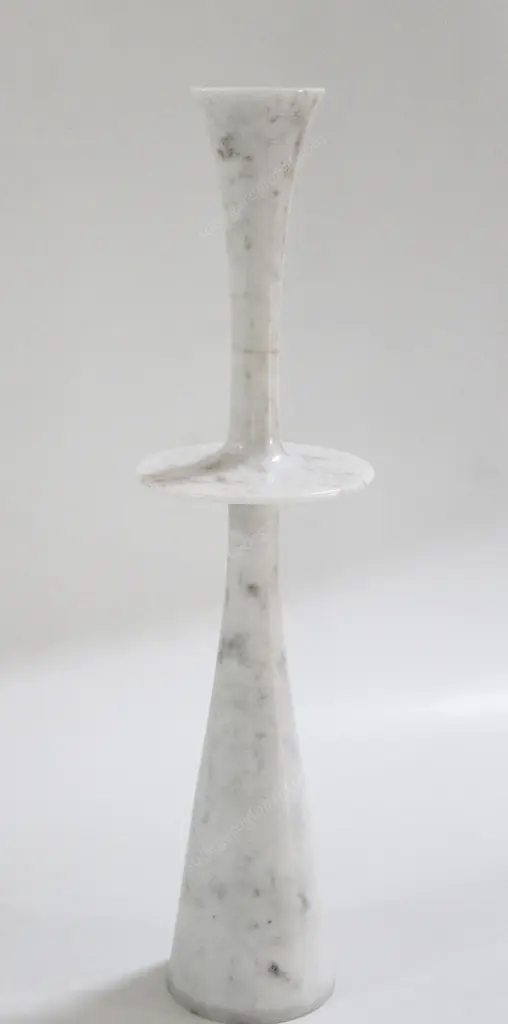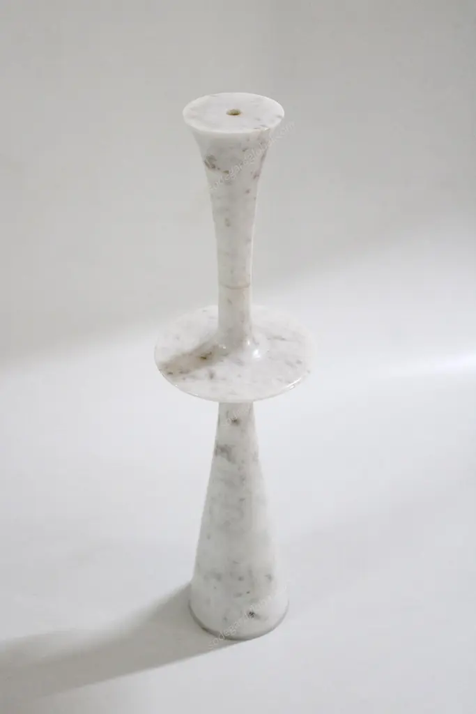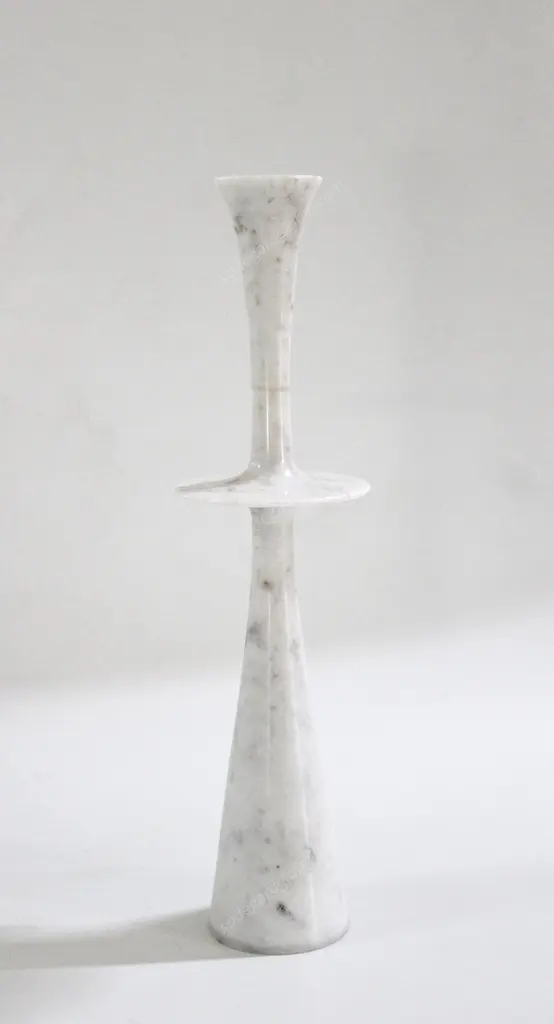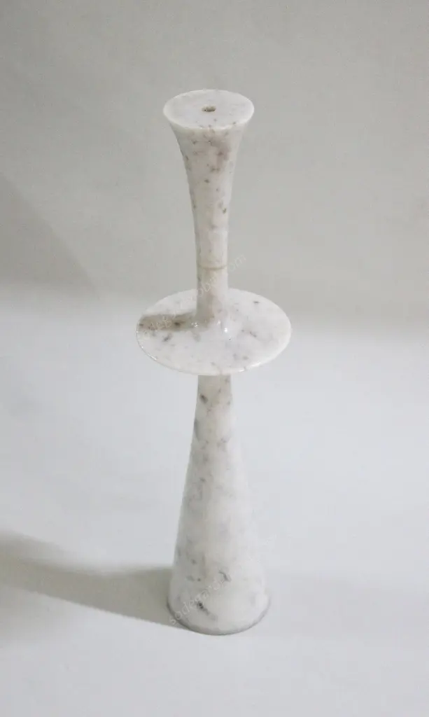 Paul Mathieu designed these elegant candlesticks for Stephanie Odegard Co. Ltd. Solid pieces of marble are turned to create these delicate designs namely Ove, Flute, Plat I and Plat II.Candlesticks Plate iSize- 6” x 6” x 23” H.Materials - White Marble, Hand Carved, Semi matt finishBuyer Cancellation-The cancellation charge is 25% which increases to 50% if the production is started.Prices do not include shipping from India (for custom orders) or our MN warehouse (items from stock). That will be additional.