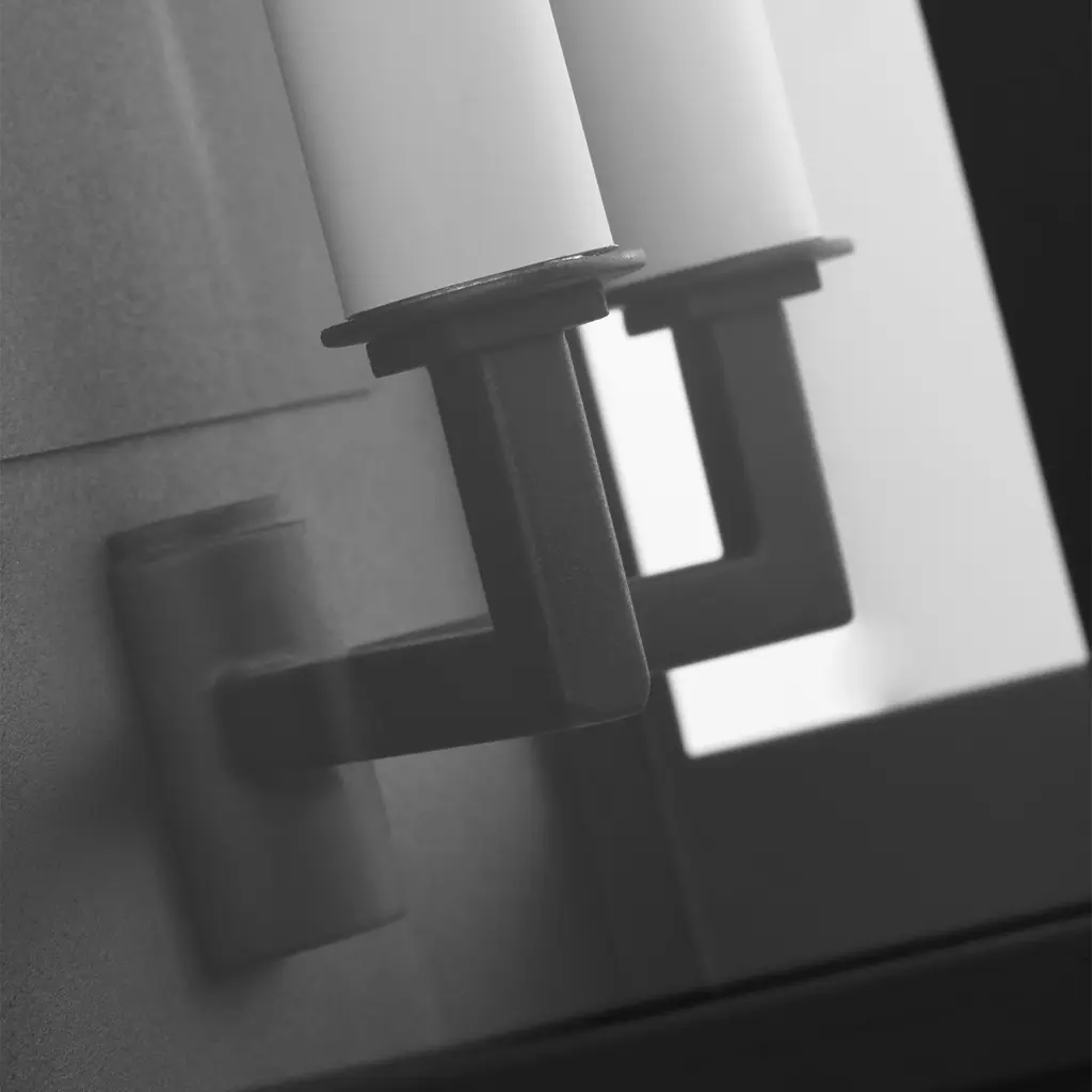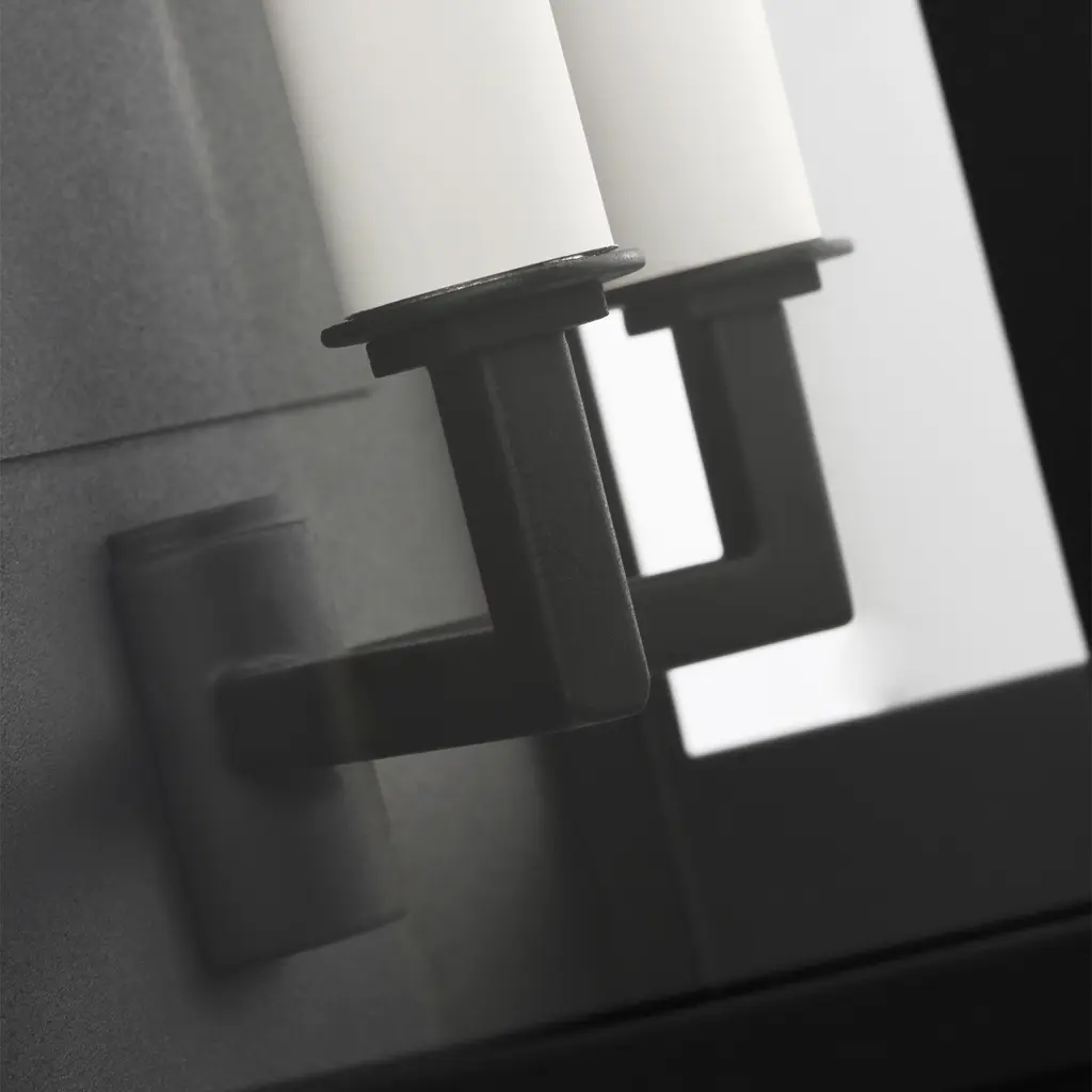 The Cupertino outdoor series by Chapman & Myers was created to embody a more transitional classic rectangular lantern profile. Rather than feature filament tube bulbs, each lantern has a more traditional candelabra with cream candle tubes to complete the design. The top and bottom of each lantern have an almost architectural stepped detailing.