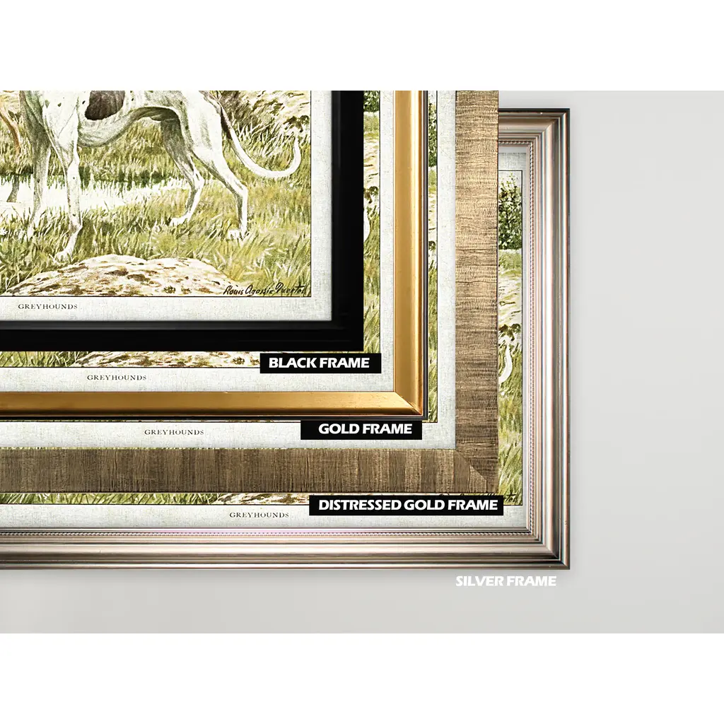 Canine Plate I - Framed Premium Gallery Wrapped Canvas Silver Frame A premium hand wrapped Giclee canvas. 100-percent and created to last . Each frame is custom cut and mounted by hand and applied around a custom printed 24x36" hand wrapped giclee printed canvas. OVERALL SIZE : With Silver Frame : 30"x 42" ** Overall size may vary slightly from piece to piece Each piece is made to order. 100-percent Built to Last Each piece comes ready to hang Shape: Rectangle Orientation: Horizontal Frame Material: Wood Subject: Animals, Illustration, Photography Style: Traditional Season or Holiday: All Seasons Size: Large Frame Color: Silver