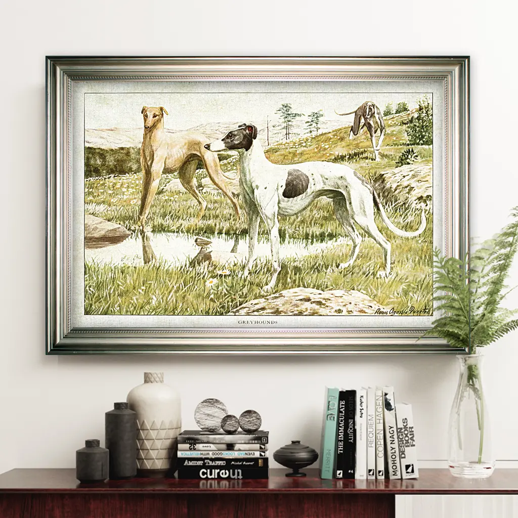 Canine Plate I -Silver Frame - All Seasons - Traditional - Silver - Rectangle - Impressionism - Arthur Albin - Photography - Wood - Handmade - Large