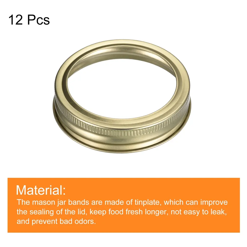 Canning Jar Rings, 12 Pcs Tinplate Replacement Bands Regular Mouth - Gold - 86mm