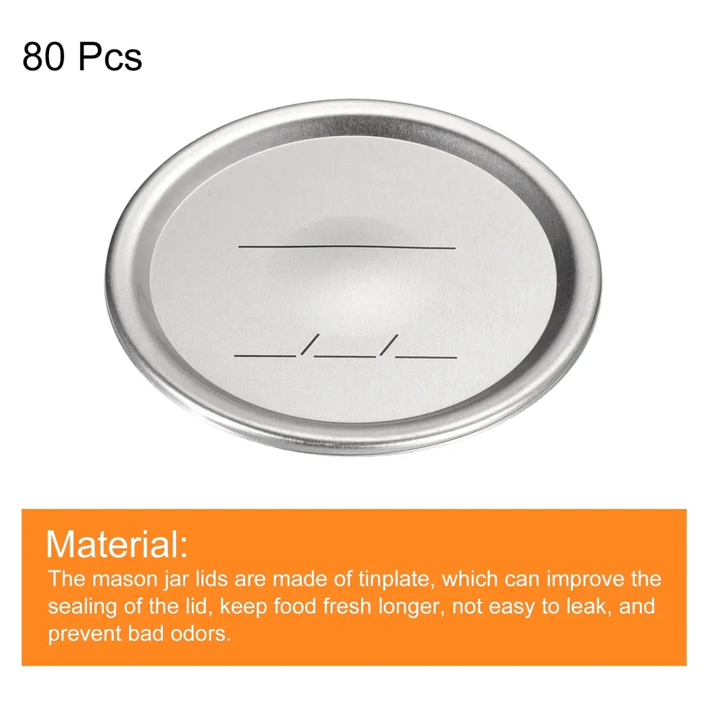 Canning Lids, 80pcs - Tinplate Mason Jar Lid, Wide Mouth With Date - Silver - 86mm - Silver - 86mm
