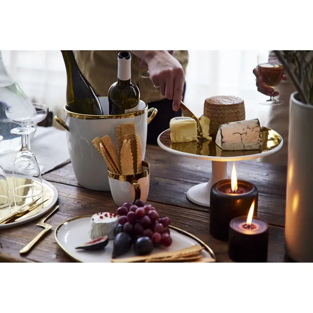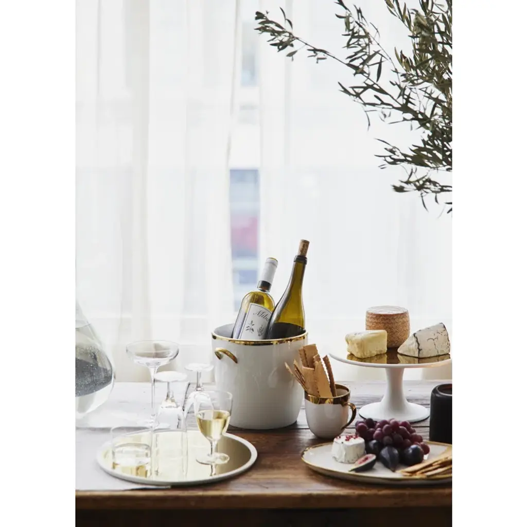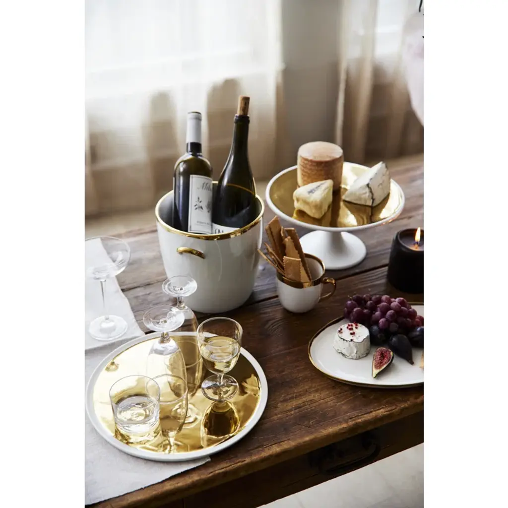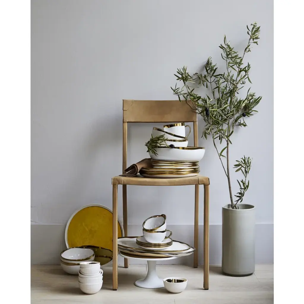 The Dauville Collection exhibits a contrast between a creamy texture and a bold metallic glaze, which in turn yields a unique harmony of glamour and subtlety. Each piece features a contemporary shape and a distinctive free-form coating. Perfect for entertaining your guests with artisan sophistication and poise.