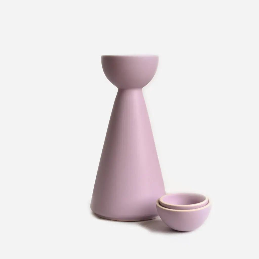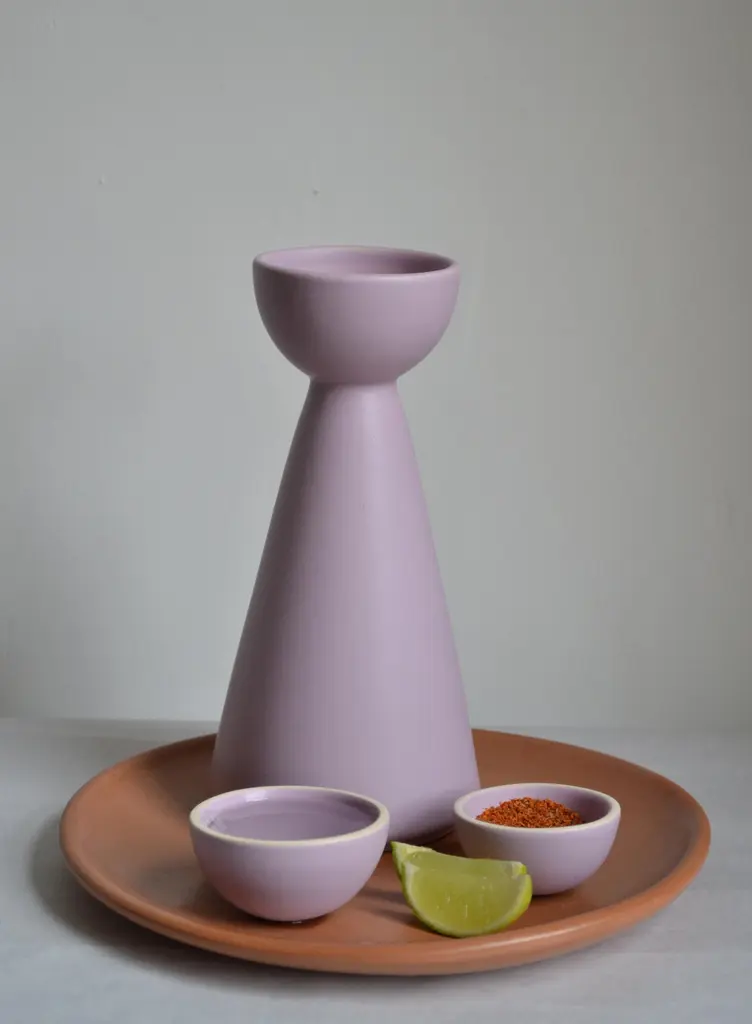 Carafe And Cups, Tequila Bottle. Mezcal Bottle And Cups. Lavanda Ceramic.