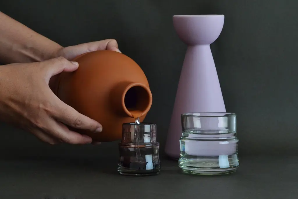 Set includes - 1 bottle and 2 cupsOur carafe colection is a tribute to the traditional pitchers of the regions of Tonala´ and Tlaquepaque in Jalisco, these two regions developed during the period of the conquest as pottery centers.Half MoonThe Half Moon carafe is specially designed to contain Mezcal, Tequila or any other liquor. Its conical shape refers to the shape of the agave leaves while the upper part takes the semi-spherical shape of the cup traditionally used to drink mezcal.The head of the bottle also serves to contain two glasses of smaller diameters which can be used to serve the liquor or salt to accompany the drink.The cups can be accommodated in different positions depending on the use you want to give them.The carafe can be used to contain mezcal, tequila or any liquor or spirt.