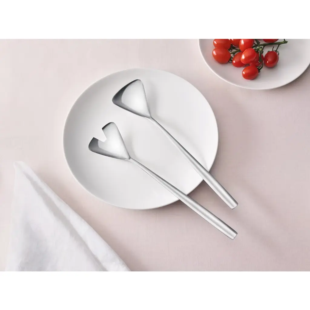 Carelia salad servers were designed by Bertel Gardberg, one of the major forces in Finnish design, and were inspired by the Finnish archipelago. Carelia cutlery range is as modern and pleasing today as it was at the beginning of the 1960s, when it was first introduced. The sophisticated feeling of the Carelia range results from a combination of straight and soft lines and polished, stainless steel. Carelia was originally released by the Finnish Hackman.
