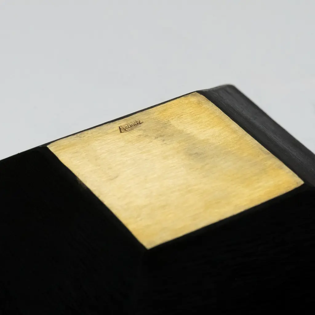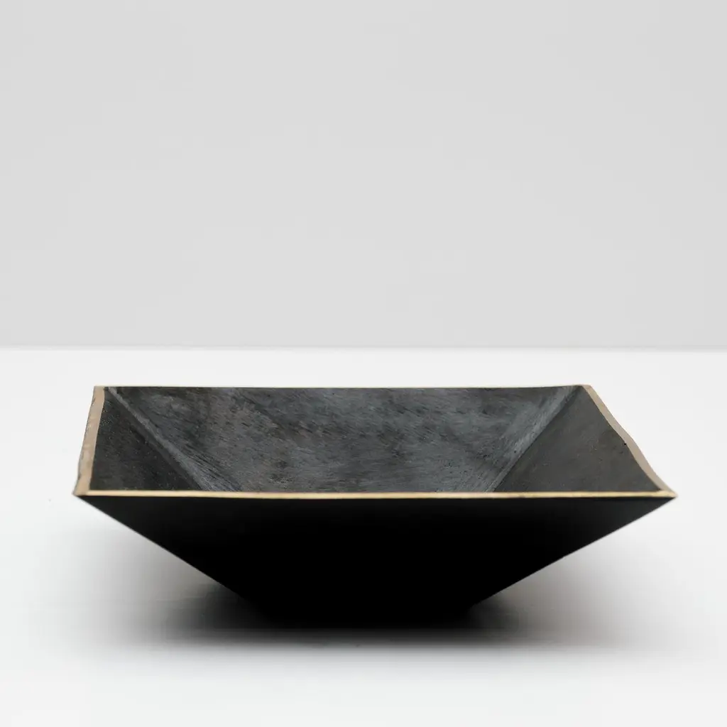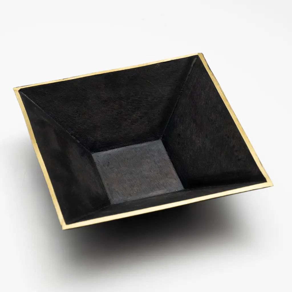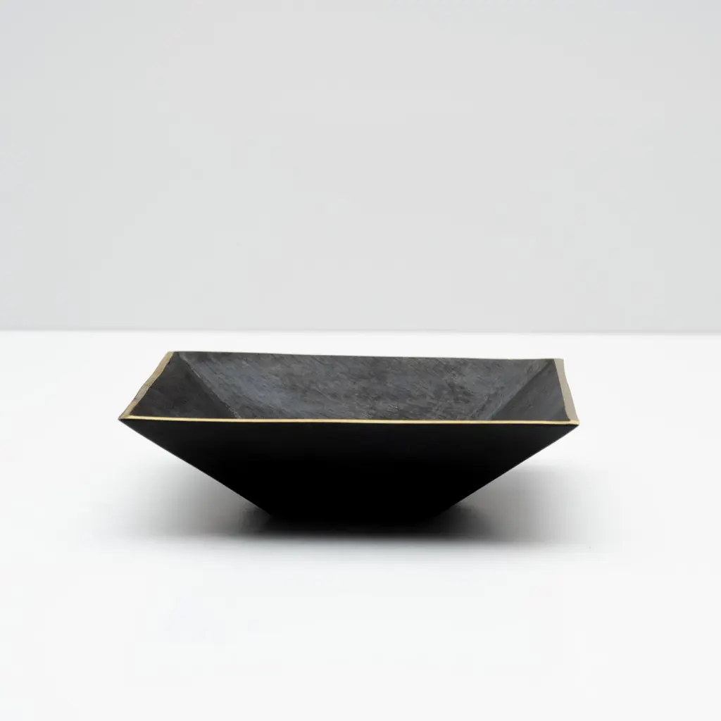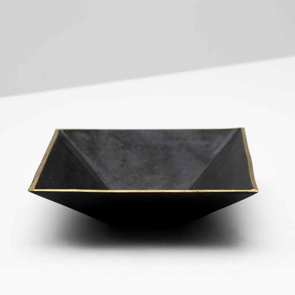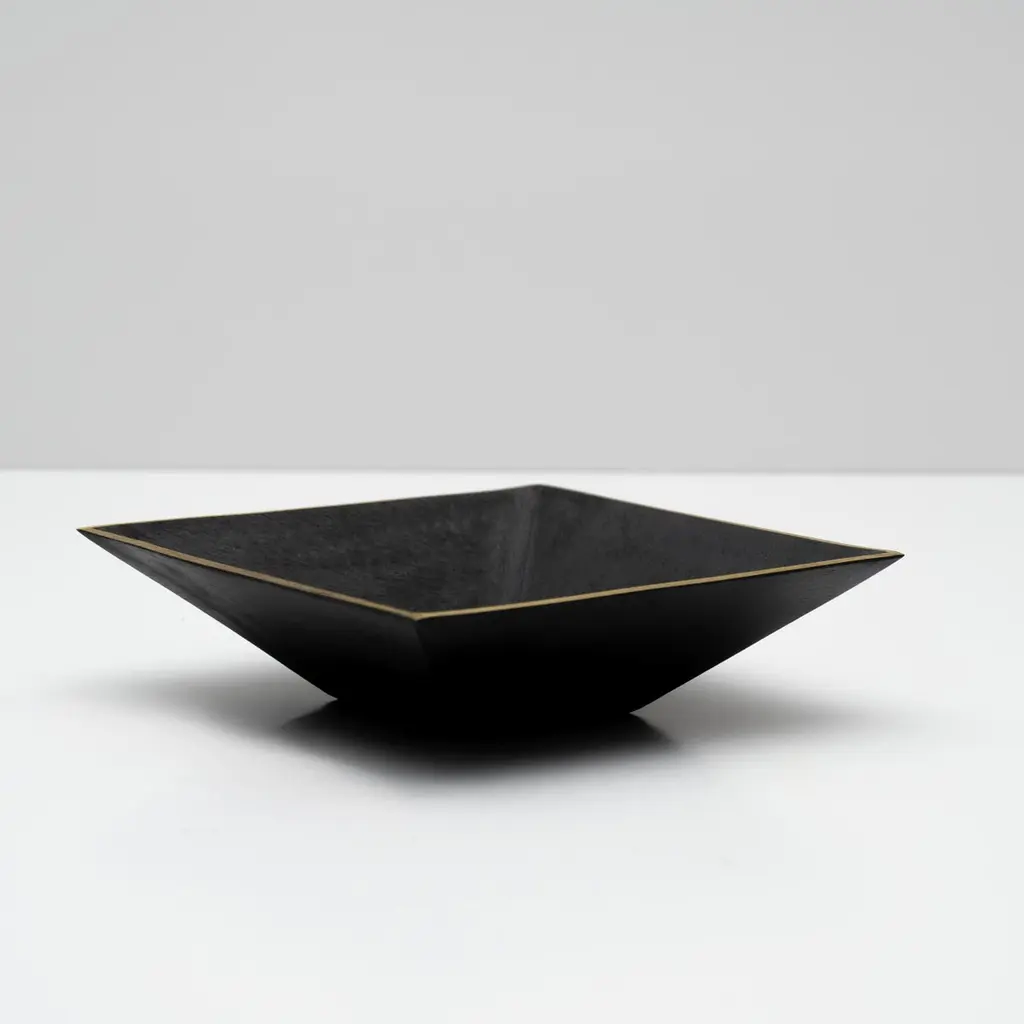 Carl Auböck Model #4482 patinated brass square dish. Designed in the 1950s, this incredibly refined and sculptural Viennese bowl is executed in polished and darkly patinated brass. Originally conceived as an ashtray, this decorative vessel can be used for a variety of purposes as a catch-all or display piece. Also available in a triangle-shaped variant in a separate listing.Price is per item. One in stock ready to ship. Available in unlimited quantities. Please note that in-stock availability is subject to change at any time. Out of stock lead time 2-3 weeks or more. For time-sensitive orders, kindly inquire prior to purchasing.Produced by Carl Auböck IV in the original Auböck Werkstätte in the 7th district of Vienna using the same exacting standards, high-quality materials, original molds and techniques of his legendary grandfather. Auböck's design career was long and varied, reaching its pinnacle of prestige at the Triennale di Milano in 1954, where he received four gold medals in recognition of his iconic work.Please note that only one representative example of each item is shown in the images. Finish varies from item to item due to the handmade nature of their fabrication and due to the unique chemical patination process, which is meant to simulate 80-100 years of exposure of brass to sunlight.Made to order. All sales are final.