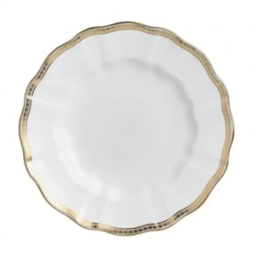 A simple gold pattern of tiny diamonds set in a finely drawn gold border gives an elegantly modern appearance. From morning coffee to a full dinner setting, Carlton Gold is ideal for today's dining styles. A perfect pattern to mix and match with other designs. Made in England by Royal Crown Derby. The Royal Crown Derby Porcelain Company manufactures the highest quality English fine bone china and collectibles at its headquarters in Derby, England (the English Pottery district). Although the present factory was established in 1878, the original factory was set up nearby in Nottingham Road in 1750. Queen Victoria granted permission to include the title "Royal" in the company name in 1890.