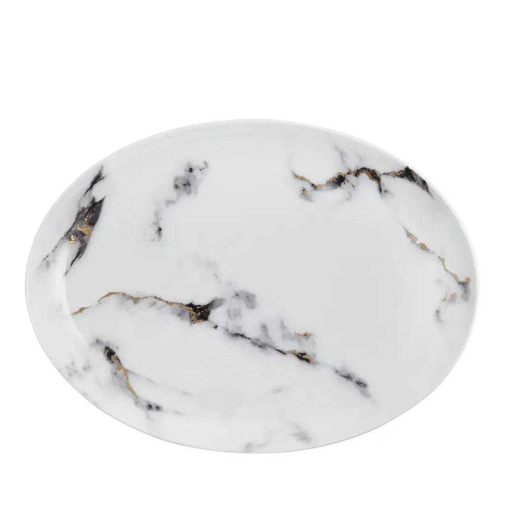 The combination between porcelain and drawings inspired by the noble marble of Carrara, a very refined, geometric approach, creates the illusion that each piece of the set is interchangeable. An unexpected collection created by French designer Coline le Corre. Vista Alegre is a world-renowned tabletop company and manufacturer of the largest collection of fine tableware, home decor, giftware, and hotelware in porcelain, crystal and glass in Europe. Known for its strong connection to design and culture and its tradition of working with world-renowned artists such as Christian Lacroix, Oscar de la Renta, and Karim Rashid, Vista Alegre offers a quality of excellence that appeals to a broad range of consumer tastes.